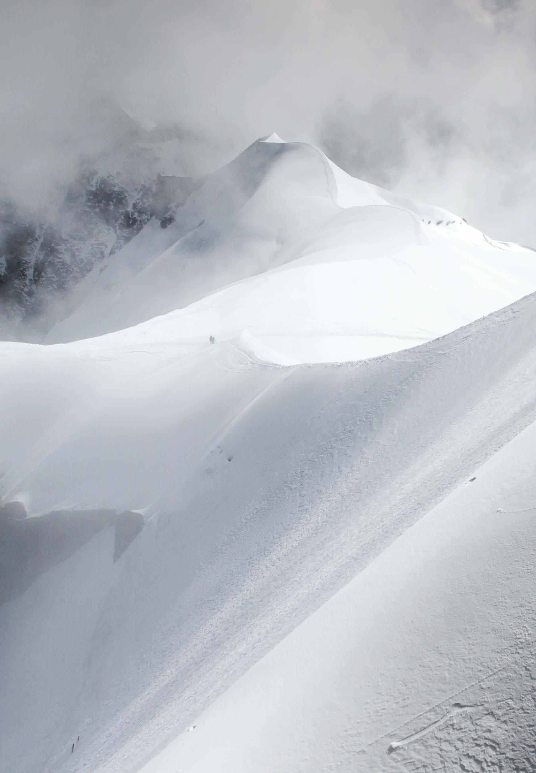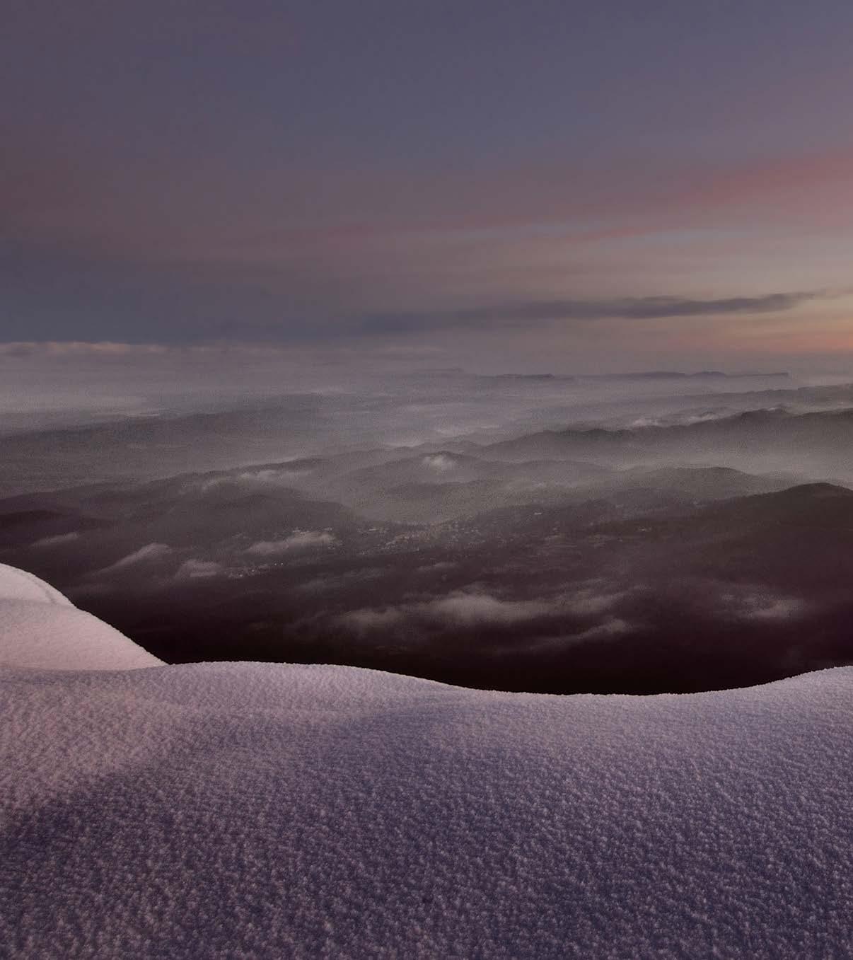 Donde la tierra y el cielo se encuentran. Aristas de una belleza desgarradora. Desniveles que conducen al cielo. Equilibrios imposibles y eternos. Senderos inolvidables. Silencios que gritan a voces. Desafíos, con toda el alma, al vértigo. Descensos que exigen lo mejor de uno mismo. Niebla, nieve, viento.