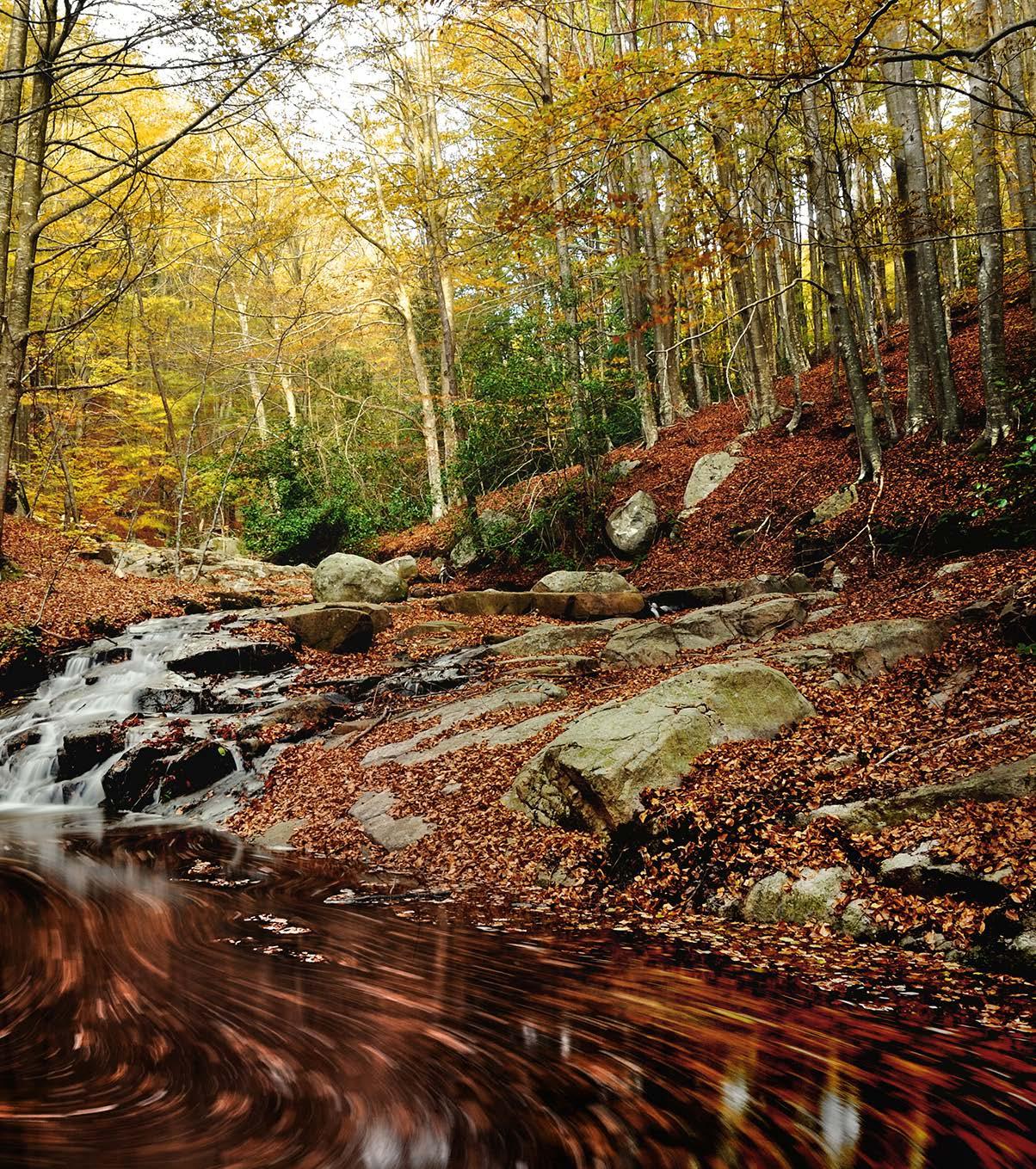 Otoño, maravilloso otoño. El hayedo está encendido de rojos y amarillos. En el embalse de Santa Fe el agua me susurra leyendas llenas de nostalgia de las Paitides, las dones d’aigua. Y no se me hace raro. Si un lugar me parece adecuado para la magia de estas historias, es en un riachuelo del Montseny que cruza un manto de hojarasca roja y cuya superficie reluce por los reflejos dorados del fuego del otoño.