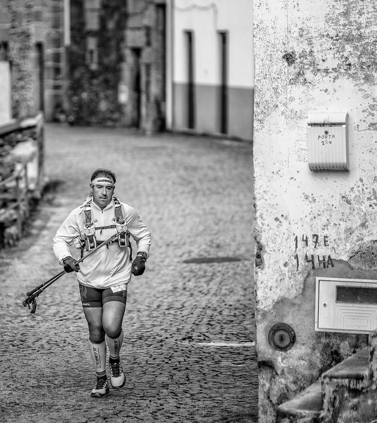 Oh Meu Deus. Antes de la salida una gran tromba de agua se encarga de enfriar los pensamientos y hace que la pasión se convierta en magia. Algo que no desaparecerá durante muchas horas. Toca deambular por aldeas remotas en busca de buenos momentos en forma de luz. Y en cada trayecto piensas la suerte y la desdicha que tienen los corredores al transitar por senderos que unen, como minúsculas arterias, pequeñas poblaciones en las que dejas trocitos de ti al deambular por sus calles rebosantes de arquitectura popular. Es imposible evitarlo. Si vas, te atrapan. Te sensibilizas con la dureza de habitar en esos lugares donde el sol lo hace todo perfecto. Y donde la lluvia se encargará de darte una visión totalmente opuesta. Magia pura, no ilusión. Algo inexplicable, pero real.