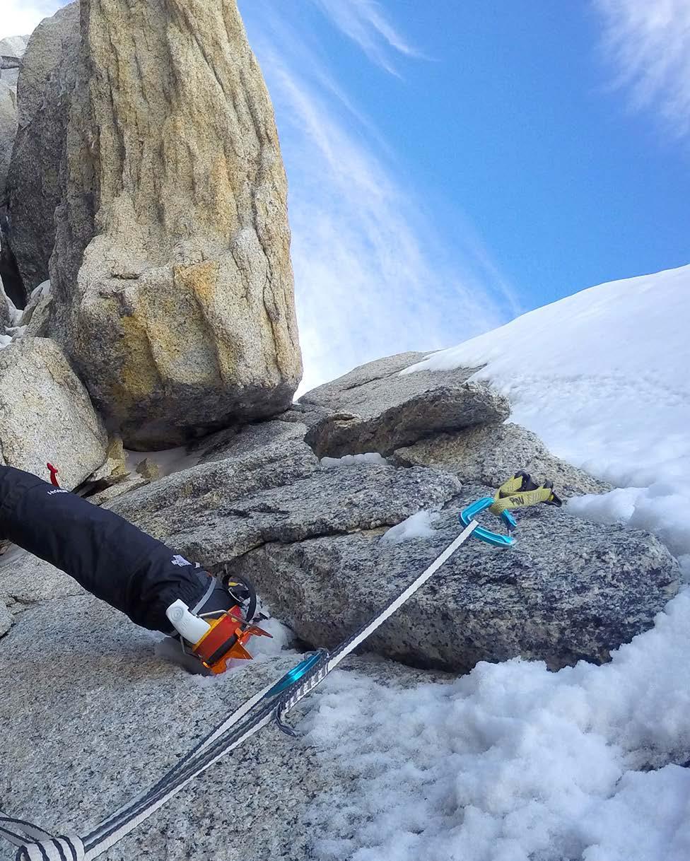 I: Es lo que te decía Eneko... Si lo sufres, te quedas ahí. Hay que intentarlo. Cuando estás en apuros siempre intentas salir de esa situación. En la escalada es lo mismo. Lo que buscas por todos los medios es bajar. Recuerdo otros descensos en Patagonia también malísimos con muchas horas encima y pensando que era imposible porque el vendaval no dejaba rapelar. Además muertos de frío. El cuerpo y la cabeza tiran para abajo. Si te paras estás perdido. Lo que quieres es buscar el confort de estar a salvo. Una bajada en Fitz Roy en 2006 fue tan espantosa que pensamos que no íbamos a ser capaces de lograrlo. Recuerdo tramos de ir a gatas en un collado arrastrándonos con los pies clavados. Y todo esto después de llevar casi 30 horas casi sin interrupción. El cuerpo al final quiere sobrevivir.