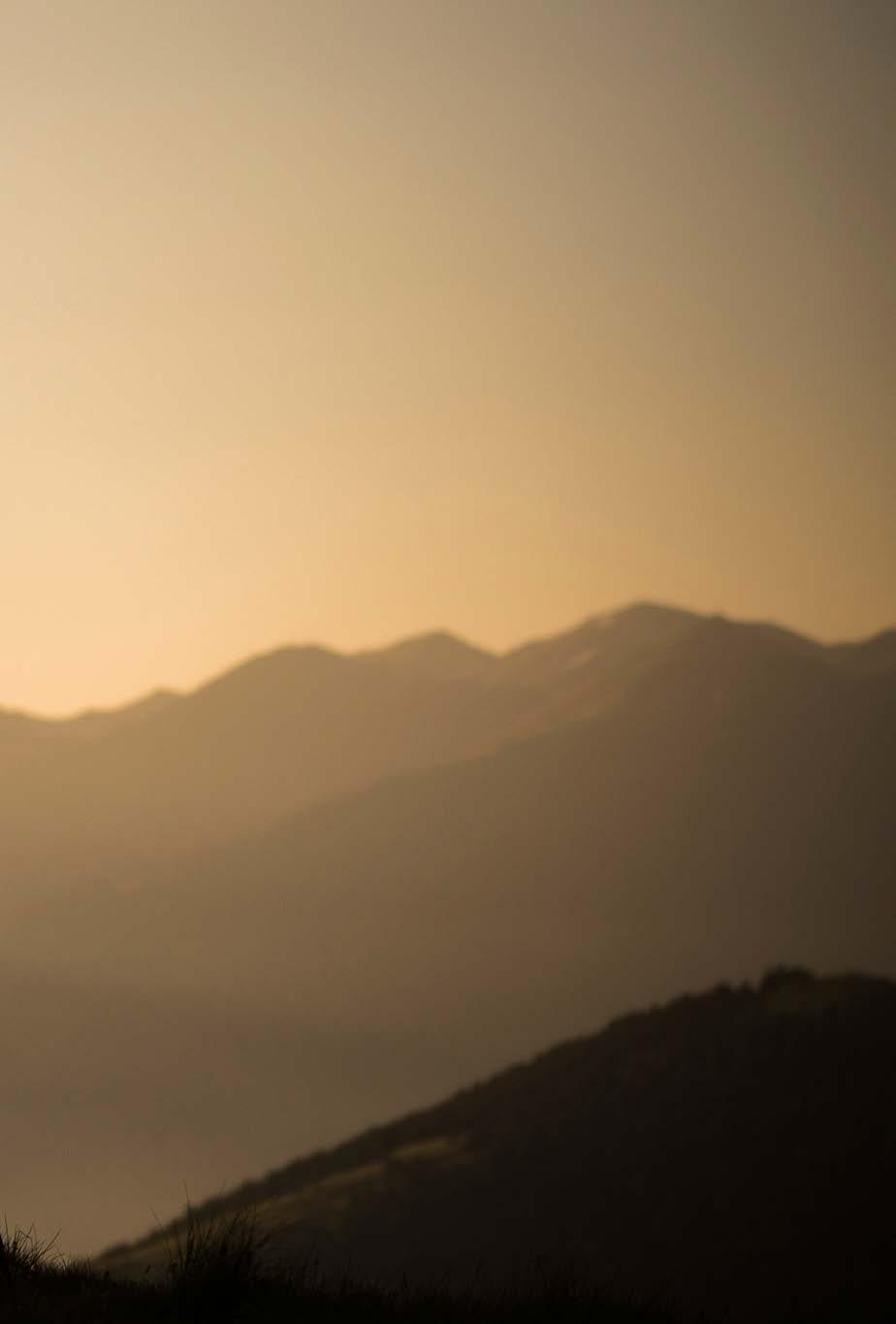 Y mientras camino, la luz de la montaña cambia. La azul de media tarde se ha ido atenuando, y a medida que el sol se acerca al horizonte, unas nubes delgadas filtran sus rayos y se hace la magia. Los amarillos, los naranjas, y finalmente los rojos, tiñen el paisaje. Son sólo unos pocos minutos, un instante, un suspiro… Y se acaba. Pero ese suspiro dura una vida.