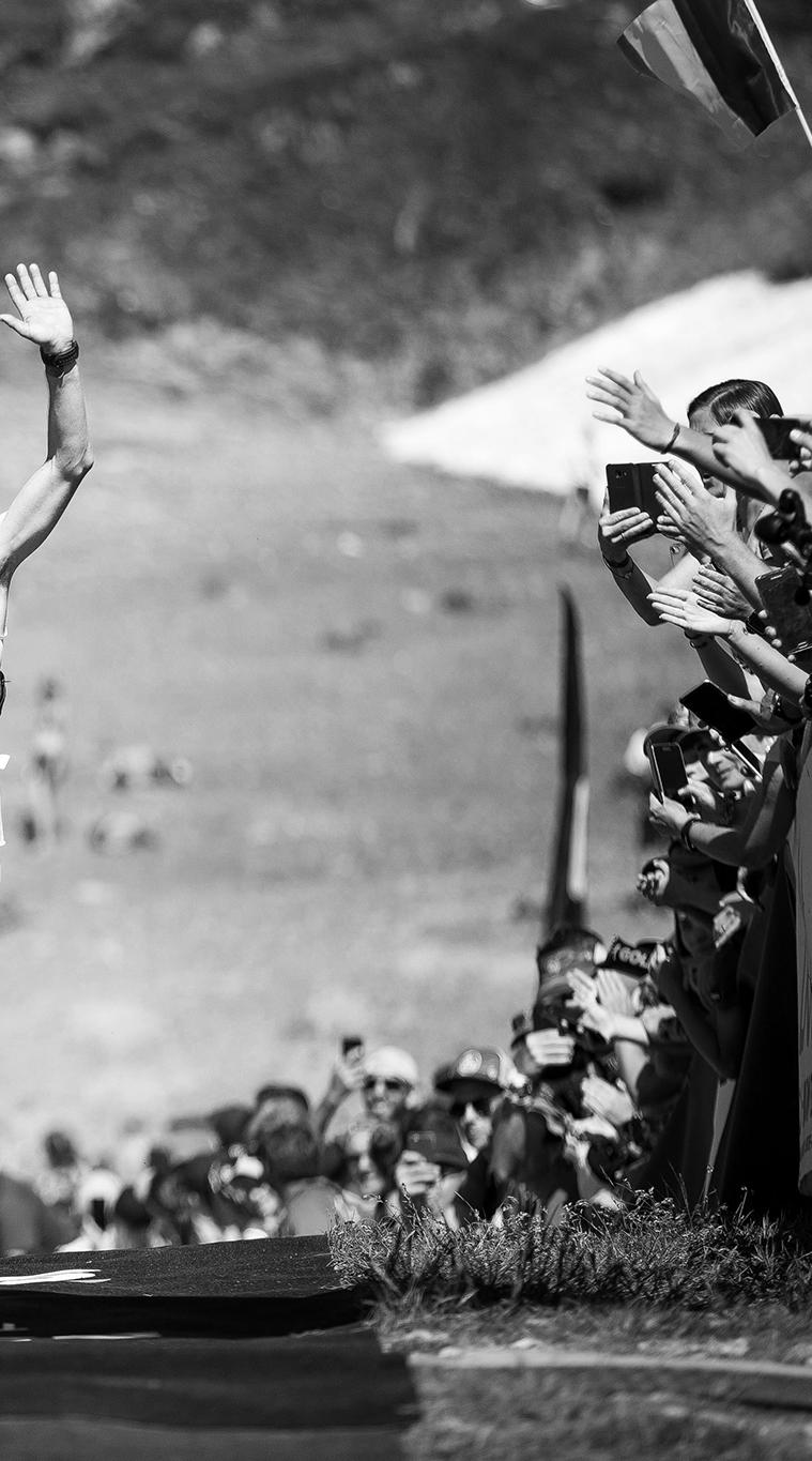 Desde mis 4.810 metros de altura, observo una gran multitud que espera impaciente su llegada. Aquél al que hace unos meses, en Arêches-Beaufort, un desafortunado golpe del destino le borró la sonrisa, está a escasos minutos de volver a mostrarla con todo su esplendor. No podía ser en otro lugar diferente a mi reino.
