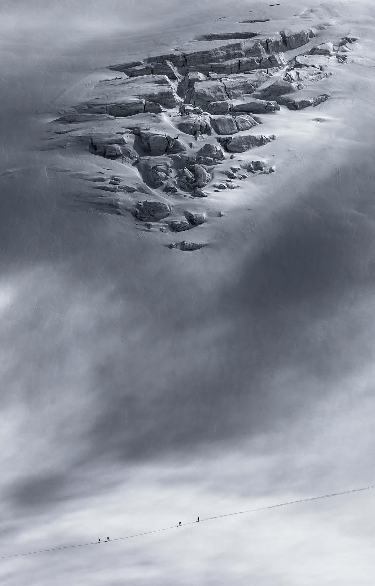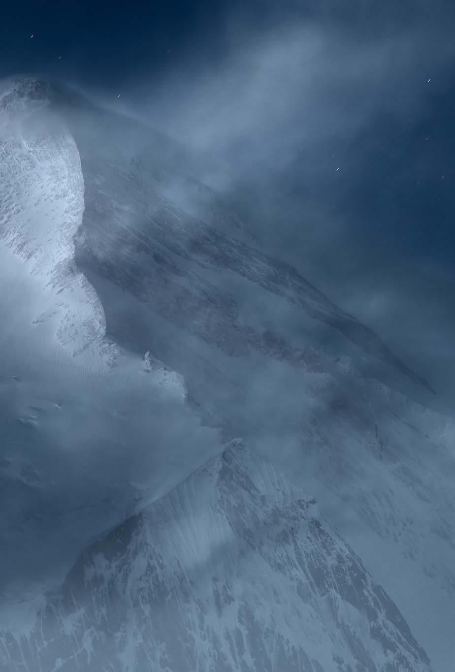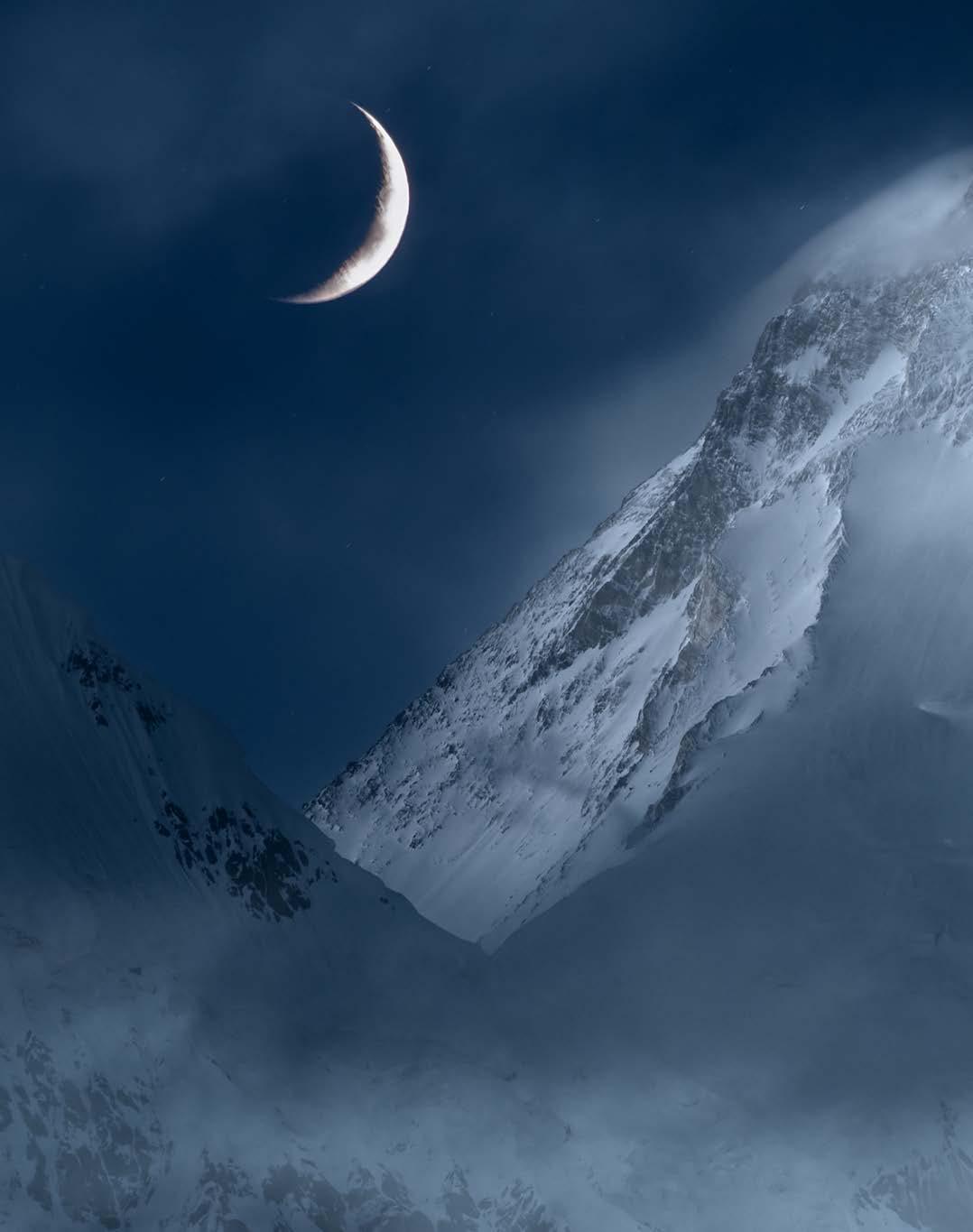 En mis fotografías trato de darle protagonismo absoluto a la naturaleza, que es la principal razón por la que me encanta ascender montañas. Intento transmitir la magia de sus luces, captar su esencia, la belleza de los paisajes, su grandiosidad… El ser humano, el alpinista, apenas tiene importancia allí. Su presencia es efímera y circunstancial, y me sirve para dimensionar el ambiente y transmitir nuestra fragilidad frente a la inmensidad de la montaña, su fuerza y la dureza de las condiciones climatológicas que la envuelven. Allí, simplemente, nosotros no somos nada.