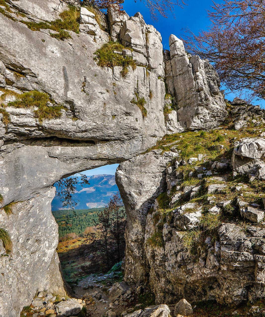 Itzina es salvaje. Desde lejos se ve como una formación rocosa cuyos bordes forman una cresta cóncava con cimas de más de 1.000 metros de altitud como peña Lekanda, Gorosteta, Ipergorta, Altipitatz y Askorrigane. Entramos a su interior por un increíble pasadizo en medio de la roca llamado "ojo de Atxulaur". Las vistas desde las distintas cumbres son realmente fascinantes. Hayas centenarias y musgos conforman un espacio que te hace sentir como si estuvieras en un espacio mágico. No llevábamos equipo para entrar en su subsuelo. Fue una pena, pero también una futura excusa para volver a este singular espacio natural. Nos dijeron que en su interior hay numerosas cuevas, simas y ríos subterráneos, un verdadero sueño para los amantes de la espeleología.