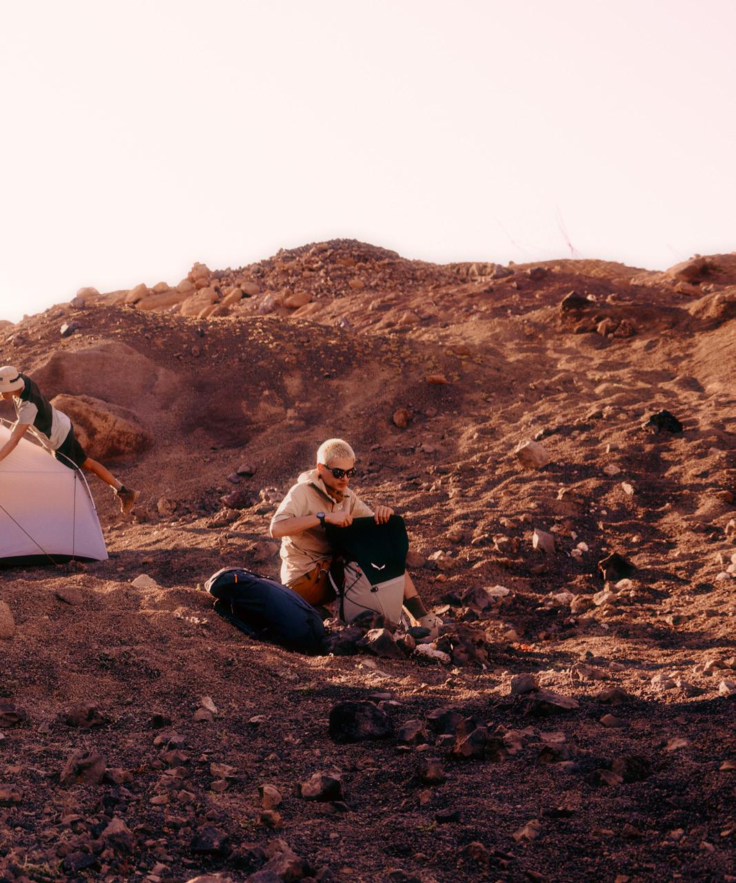 La tienda PUEZ TREK 2P, cuyos detalles conocerás más adelante, está concebida para dar espacio a dos personas y cuenta con las últimas tecnologías en cuanto a impermeabilidad, seguridad frente al viento, empaque, montaje y desmontaje y ventilación. Su construcción semigeodésica, que sigue una geometría basada en divisiones de un icosaedro, la hace muy ligera, confiable y protectora para las actividades de trekking. Se trata de una tienda para senderismo con doble techo muy estable, que ofrece protección frente a los elementos y que se ha diseñado siguiendo los principios del SALEWA COMMITTED, es decir, con materiales de máxima calidad y durabilidad y en un proceso que respeta estrictas normas ecológicas y de sostenibilidad para garantizar un menor impacto medioambiental.