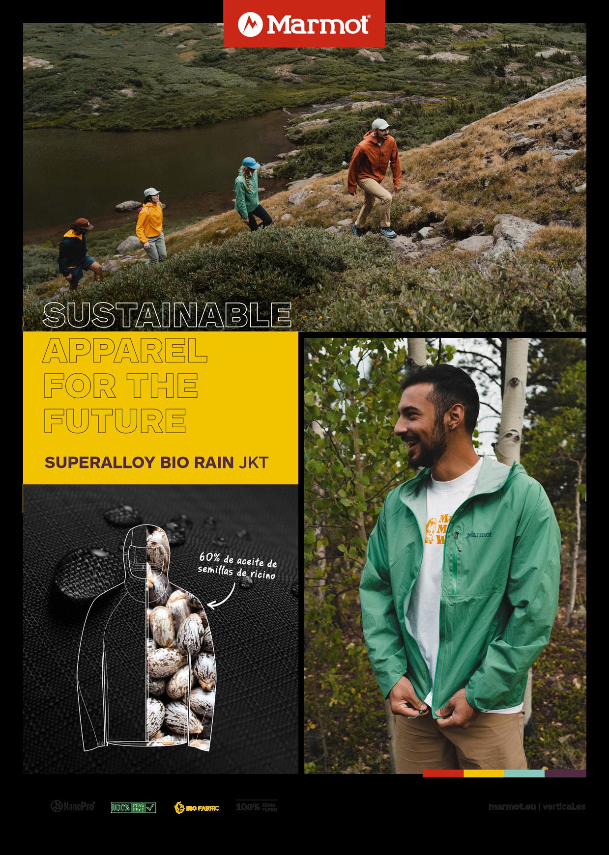 Chaqueta muy funcional de MARMOT, con capucha envolvente, que destaca principalmente por tres cualidades: sostenibilidad, ligereza e impermeabilidad. En cuanto al primer aspecto, esta prenda está confeccionada con tejido 12 deniers Bio-Nylon ripstop fabricado con un 60% de aceite procedente de semillas de ricino, atendiendo en su diseño a valores respetuosos con el medio ambiente. La ligereza se une a la compacidad, ya que sus 165 gramos de peso ocupan un espacio muy reducido, ofreciendo además la posibilidad de almacenarse en su propio bolsillo. De la impermeabilidad -columna de agua 15.000 mm- y de la transpirabilidad se encargan la inducción micro-porosa NanoPro™, desarrollada por Marmot, y la aplicación al tejido exterior de un tratamiento repelente al agua libre de PFC’s, que dan como resultado una chaqueta que protege con gran efectividad de la lluvia prolongada durante actividades de larga duración.