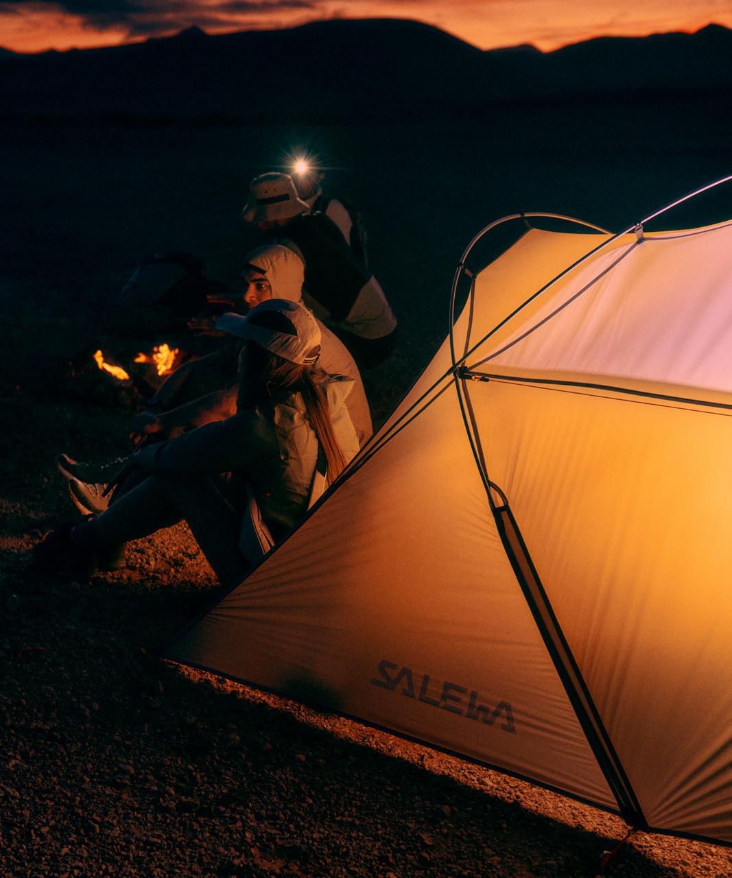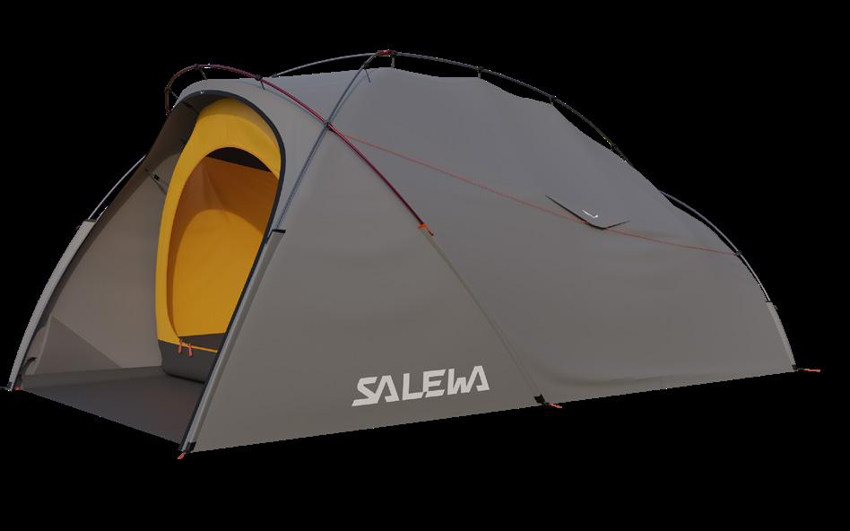 La impermeabilidad y la ventilación están más que presentes en el diseño de esta tienda. Su correcto desarrollo es fruto de la experiencia de SALEWA en cuanto a la fabricación de equipo para todo tipo de actividades en la montaña. En cuanto a la impermeabilidad, su construcción geodésica y el uso de un doble techo de Nylon Ripstop de 20 deniers, al que se le ha aplicado un revestimiento adicional impermeable de silicona/PU, hacen que el conjunto brinde una columna de agua de 3.000 mm. El suelo también es impermeable, con el uso de un nailon reciclado de 40 deniers, ofreciendo idéntica columna de agua.