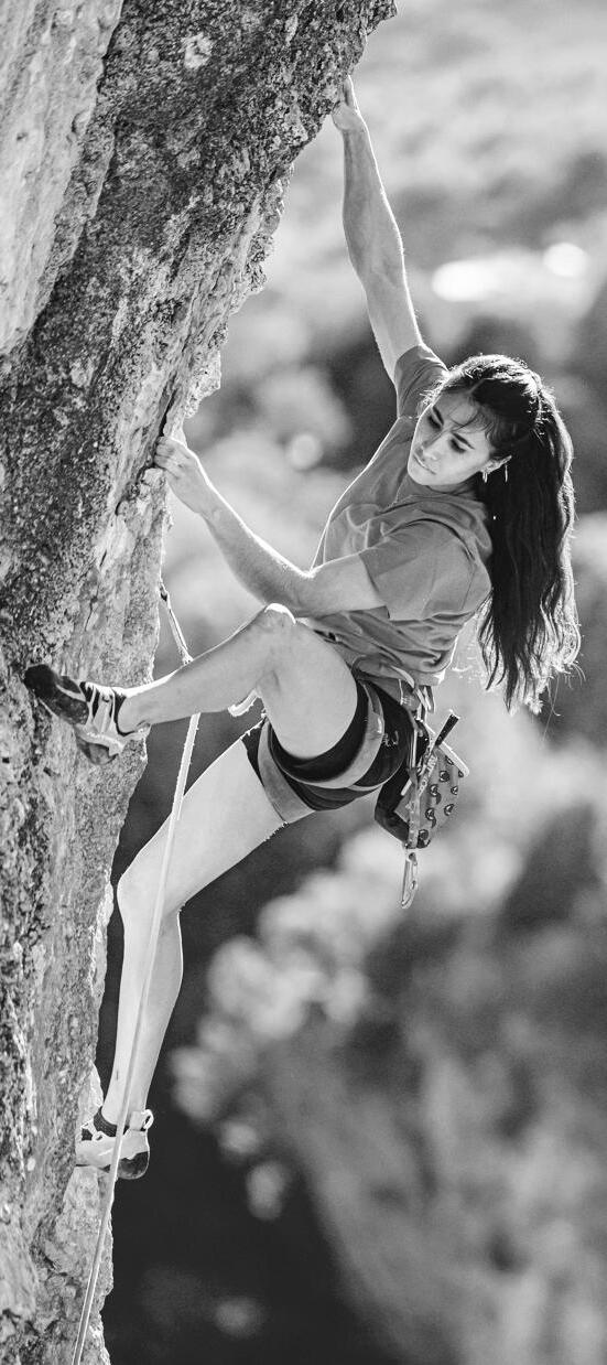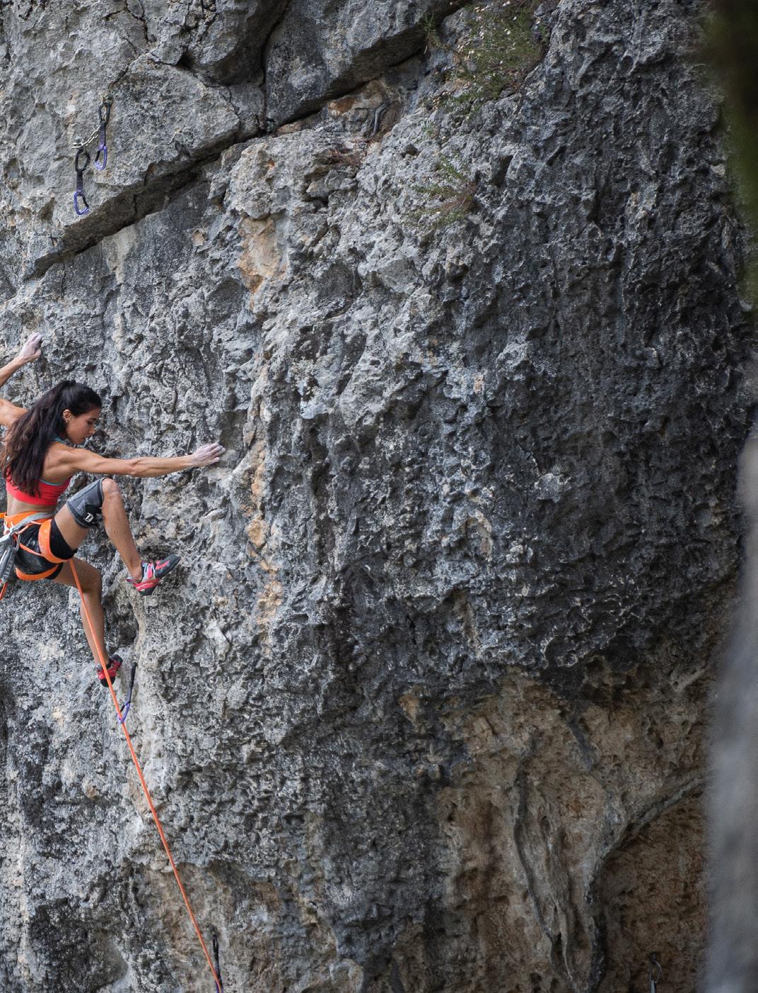 una motivación para trabajar. En mi caso, creo que toda la vida fui buena para escalar en placas muy verticales con agarres muy pequeñitos. No fue hasta que me vine a vivir a España cuando descubrí que también existía una escalada un poco más extra plomada. Escogí proyectos así porque estratégicamente quería ser mejor escaladora en esos estilos, motivándome para entrenar más. Te diría que esos son los principales motivos, razones y elementos que tengo en cuenta para elegir un proyecto que está en mi límite.