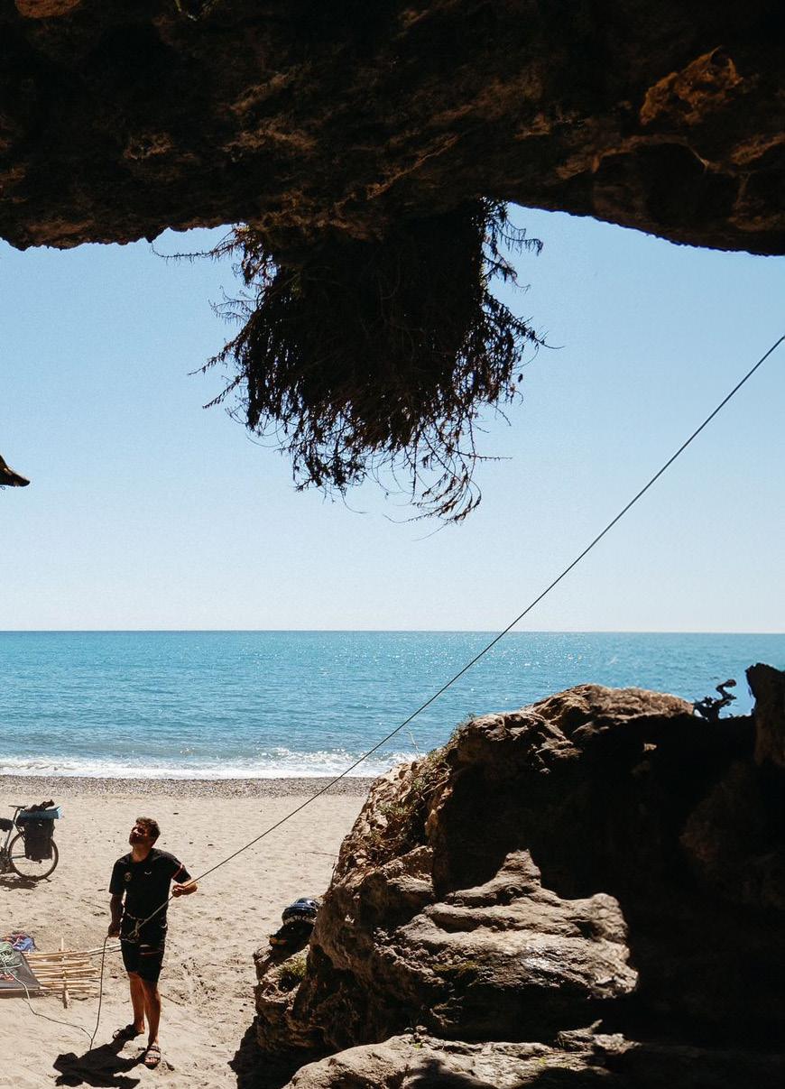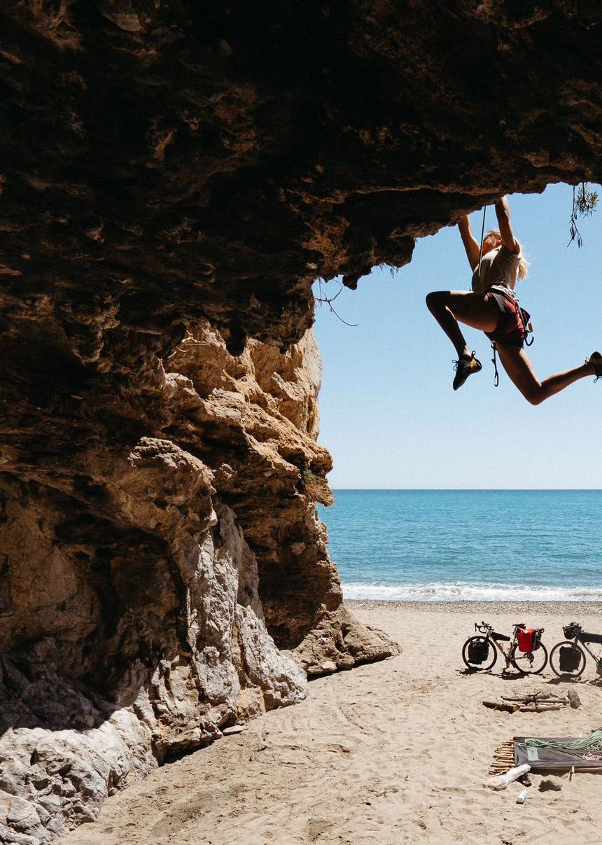 Al haber venido en bicicleta, hemos podido experimentar el paisaje que nos rodea, asimilando sus olores, colores, las colinas, las vistas y otras pequeñas maravillas que nos han hecho ser parte de ellas. Llevamos todo lo que necesitamos y nos sentimos ligeros e independientes. El concepto funciona; la movilidad sostenible es posible. Lo siento porque lo vivo. Es el poder de la experiencia: cuando te has enfrentado a una forma distinta de hacer las cosas, eres consciente de que otro mundo es posible. Se funden la utopía soñada con la realidad en un fuerte sentimiento de libertad. Sólo tenemos que comer, dormir y escalar.