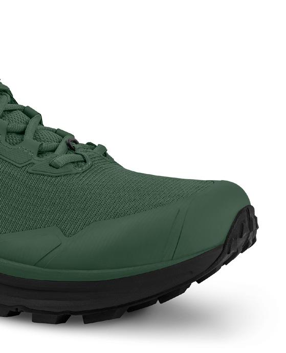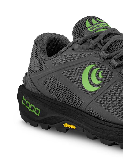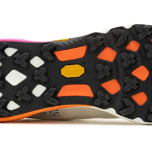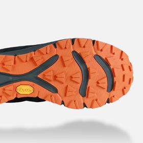 Suela fabricada con Vibram® Megagrip con un taqueado que presenta un patrón de ranuras muy variado resaltado con un espacio amplio para ofrecer tracción en los terrenos más técnicos. La disposición de sus tacos aporta máximo agarre en pasos muy técnicos y descensos pronunciados, y tracción en subidas y en aquellos tramos de la actividad -llanos y revirados- que permiten moverse a gran velocidad.