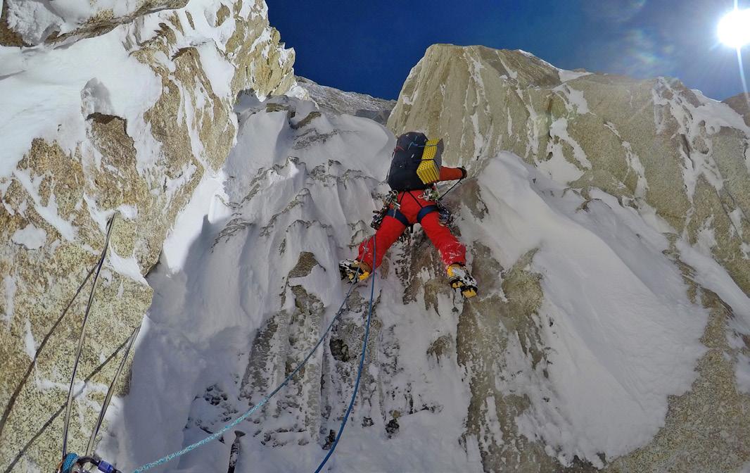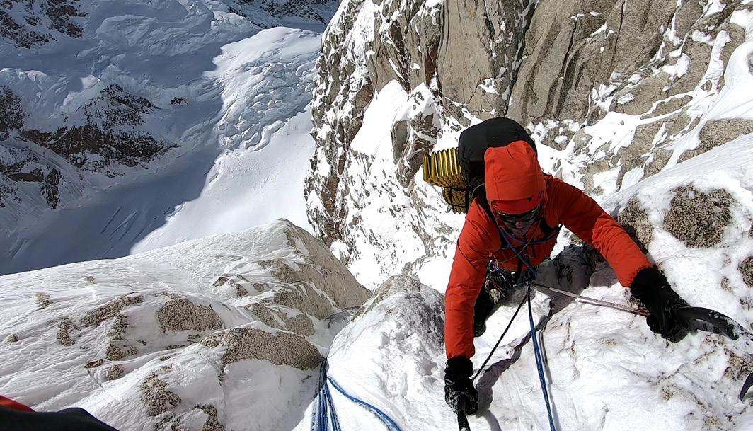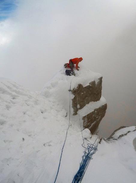 conscientes de que en ese momento estaríamos muy arriba y en un sitio donde no habría marcha atrás. Lo jodido de esta ruta es el compromiso que asumes. Por eso tiene tan pocas repeticiones. Una vez que te metes, si hace malo, no puedes salir andando por ningún lado y un eventual rescate es casi imposible. Allí, te quedas“.