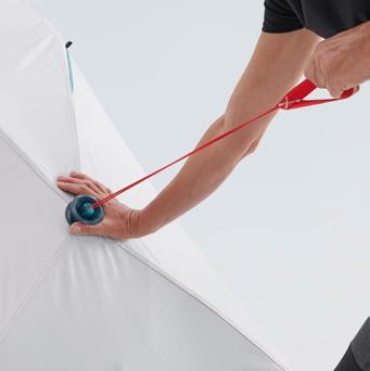 Rueda integrada que permite una circulación fluida para dar cuerda al escalador fácil y rápidamente.