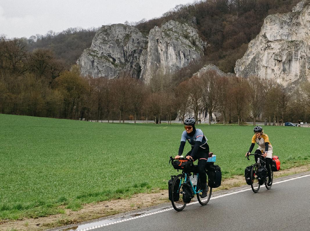 Nunca habíamos oído hablar de este pequeño pueblo de Luxemburgo más allá de por sus bellos acantilados. Llegamos un fin de semana de Pascua. El camping que elegimos está lleno, con numerosas autocaravanas enormes. Nuestro único equipo son dos bicicletas con cuatro alforjas. Tras montar nuestra tienda de campaña para dos personas, la parcela resulta enorme. Al verla, únicamente puedo sonreír. No la cambiaría por una cómoda autocaravana, incluso en esos momentos de lluvia, cuando estamos acampados en medio del barro, pues me siento libre y ligera.