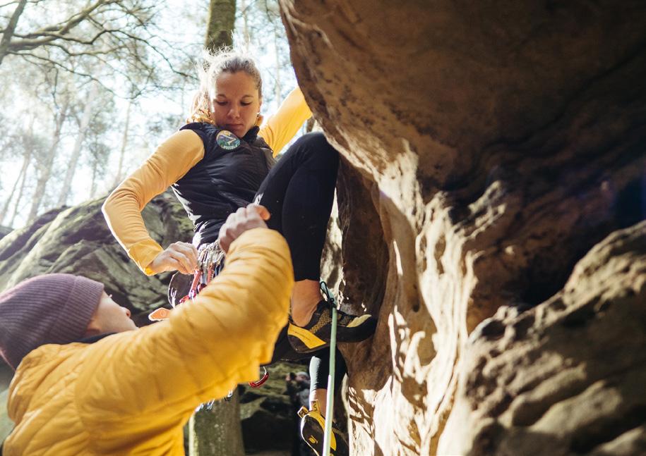 El proyecto Upossible combina escalada, ciclismo y compromiso ecológico. Todo comenzó cuando Eline Le Menestrel descubrió la bicicleta y se dio cuenta de que se trataba de un medio de transporte atractivo y realmente eficaz. Hasta ese momento, la mayor parte de la huella de carbono que dejaba estaba asociada al transporte. Buscaba la forma de reducirla. Después de compartir ideas para actividades de Bike & Climbing con Simon Kreutz, un concepto surgió y evolucionó. No sólo querían asumir un compromiso sostenible con ellos mismos, sino también inspirar a la comunidad del deporte outdoor para que ellos también lo hicieran. Este deseo apareció al verse en un gran atasco camino de una zona de escalada.