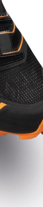 Dos suplementos de EVA de alta densidad a la altura del talón y de la zona de los dedos para proteger frente a rocas y otros accidentes del terreno.