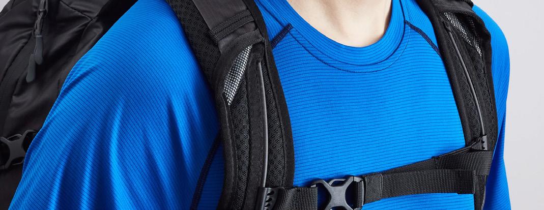 Sistema de doble acolchado compuesto por una capa interna rígida y dura que impide que los objetos del interior de la mochila se claven en el cuerpo; y una capa exterior con pequeñas cámaras de aire en 3D que se adapta anatómicamente al entrar en contacto con la espalda.