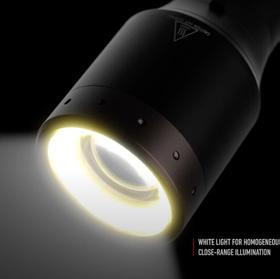 Modo Mín.: 10 lúmenes | 20 h de funcionamiento | 17 m de alcance.