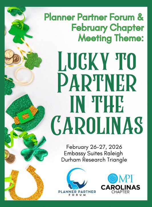 Visit the event page at Home - 2026 MPI Carolinas Planner Partner Forum and Chapter Meeting for all the details, including agenda highlights, FAQs, and lodging info.