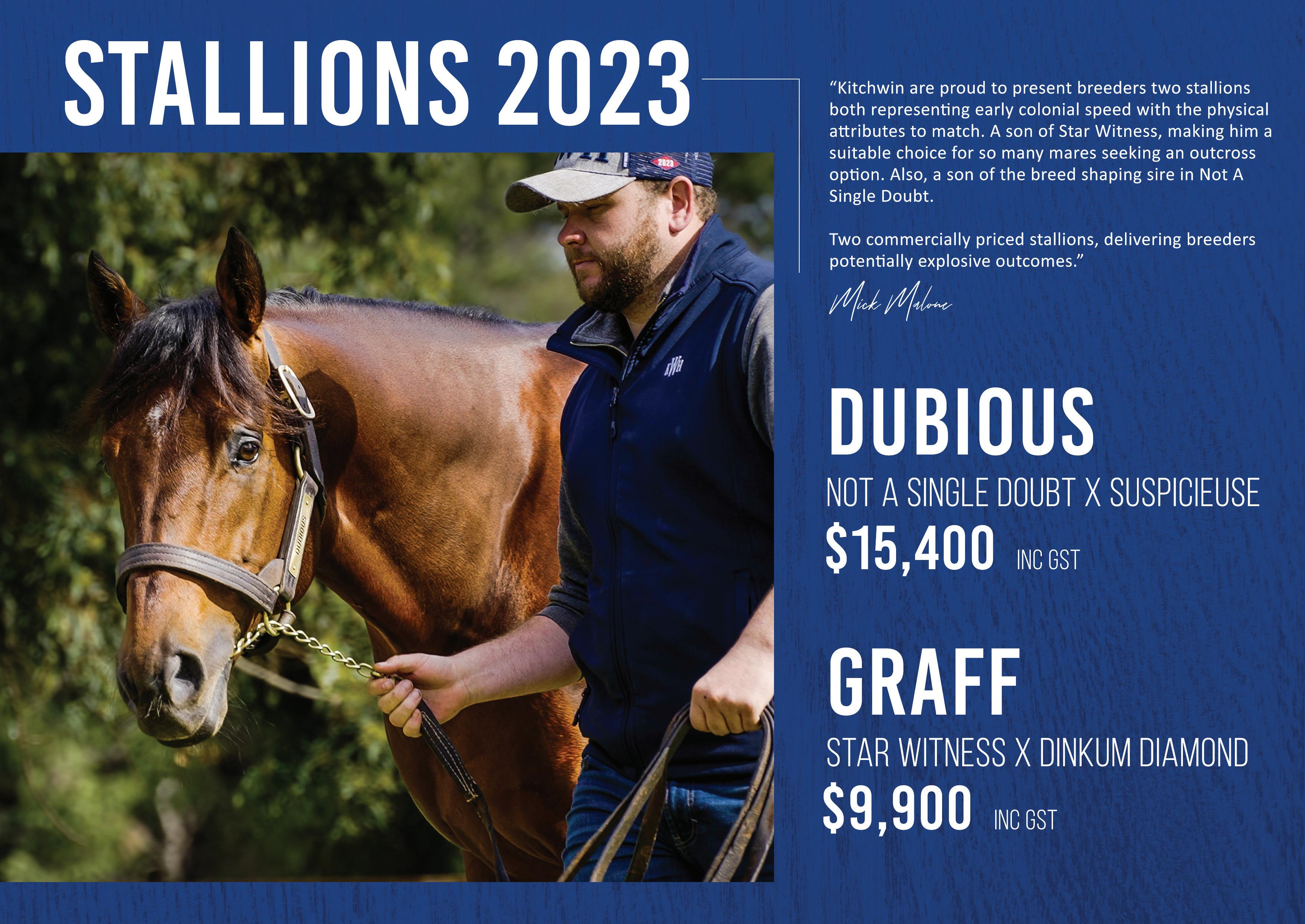 Kitchwin Hills is proud to present breeders two stallions both representing early colonial speed with the physical attributes to match. A son of Star Witness, making him a suitable choice for so many mares seeking an outcross option. Also, a son of the breed shaping sire in Not A Single Doubt.