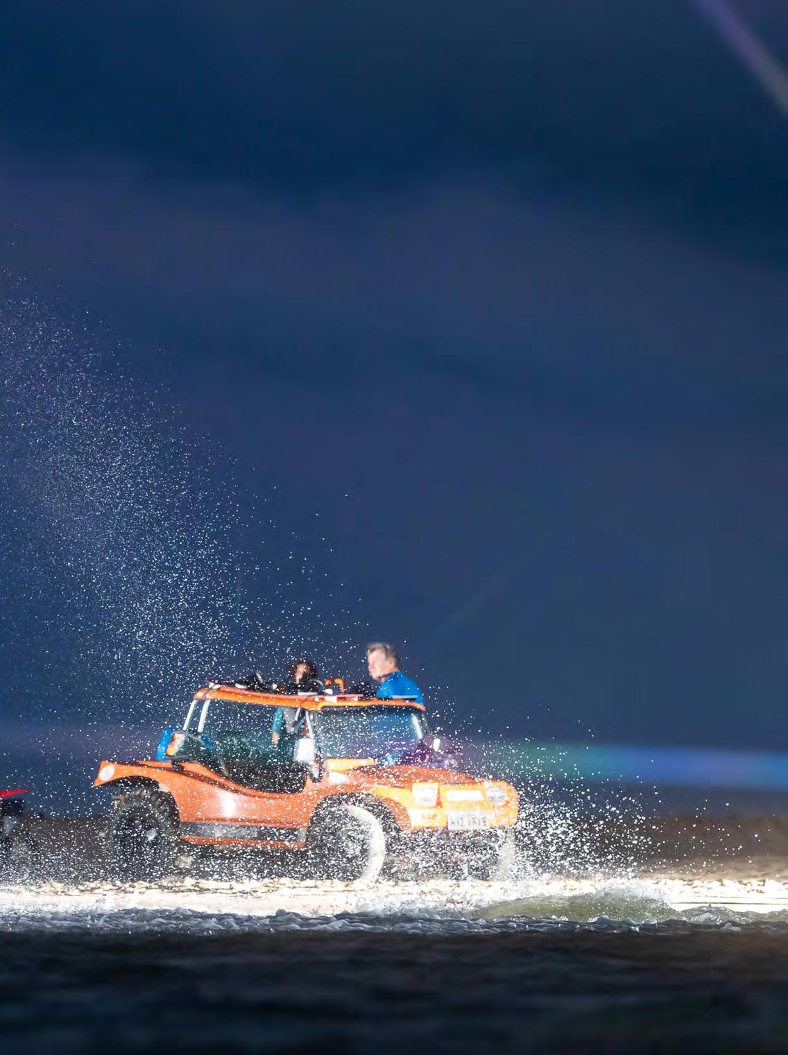 vom glitzernden Himmel fallen. Für eine Weile saßen wir einfach so da, ohne viele Worte, rundherum zufrieden, in Gedanken lassen wir die letzten Monate Revue passieren, und sind super stoked. Später als Corey und ich zum rhythmischen Crashen der Wellen in unserem Zelt unsere Äuglein schließen, verbindet uns das Gefühl der Sehnsucht, die wir jetzt schon spüren, nach dem nächsten Trip in das Outback.