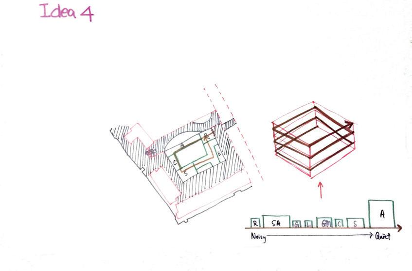 This concept was partly derivative from some of the geometries in proximity to the site, namely the artwork elephant, a box-park like structure created through arraying a series of storage containers atop of a platform. Each of these containers serves as a creative space, retail unit or social hub. I also noticed that there was a housing estate opposite which featured a number of different dormers jutting out at different points in the facade. I have appropriated this in the design of this concept which is located in an office space above the retail block on Walworth road. Each shipping container could encapsulate a pop up store run by local creatives and entrepreneurs. The containers could be staggered to create space for people to walk on top of these platforms as well as a interesting pixelation effect to the facade of the building. The building could serve as a marketplace for ideas and people. The structure iteslf is seated within the shelled interior of the old office building. A grid of supporting beams could possibly run alongside the containers to provide structural support for the cantilevering containers. services such as lifts, fire escapes and staircases could be located to the rear of the building (east relative to the site) with a marketspace in the intermediate space between the front and the rear of the structure.