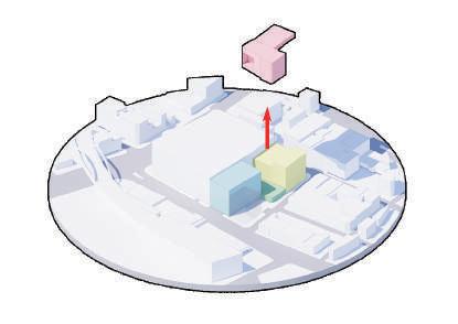 EXCAVATION SPACE The excavation level provide spaces for shops, workshops and restaurants. Also, include an entrance to the apartment, allow residents to enter the excavate level directly. WEST EXIT The exit to the west can be acces via staircase and ramp as a disability friendly facility. The west exit connect to the renovated Bathroom and the garden area as a continue of recreational experience. URBAN INTERVENTION: SYNAPSE7