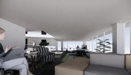 The design of the accomodation is using corridor as third space as concept, encouraging social interactions and foster connectivity and creativity. The building features a multi-functional ramp running through each floors, scrolling around the building. The external section of ramp locate at second and third floor, featuring roof top garden for socializing and leisure activities such as yoga. The interior sections connect common spaces on each floor and using as a circulation for accessing accommodation rooms. People walkin to the community and continuesly interating with it, going home does not equal to disconnection.