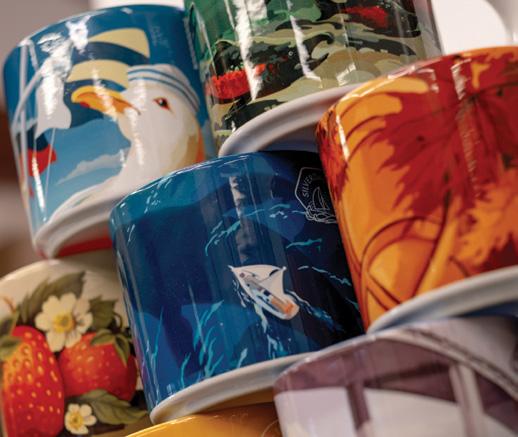 E A display of mugs from April’s Mug Hunt as part of the 80-year celebration.