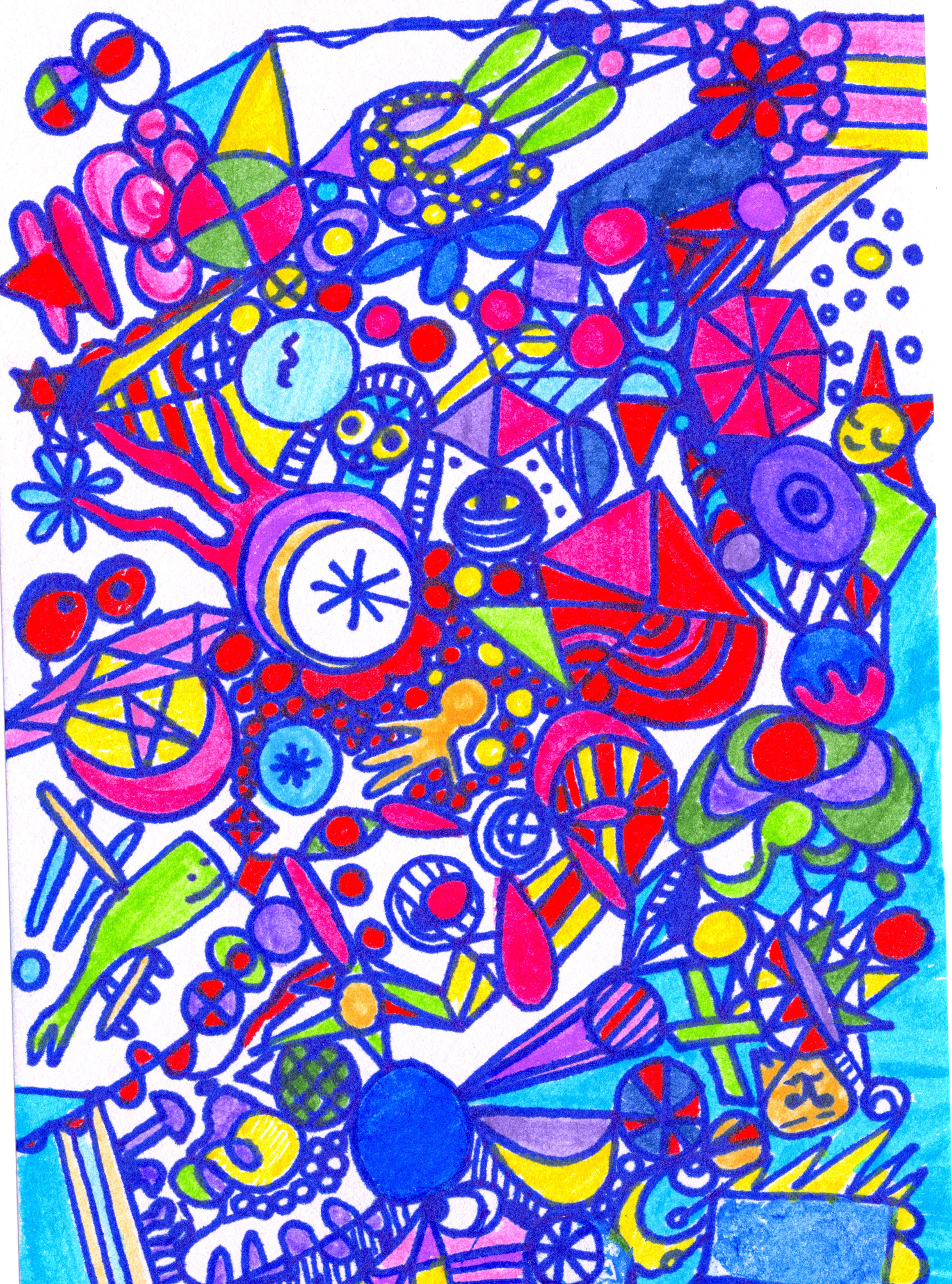 I become fast friends with a redheaded witch. This retreat is redolent with witches; I can almost smell their magic in the thick air. The witch wears earrings shaped like safety pins and carries a rainbow-painted fan. We watch bad TV shows and sit beside each other in the song circles. I’m cognizant always of her bony wrists, her teeming sketchbooks,