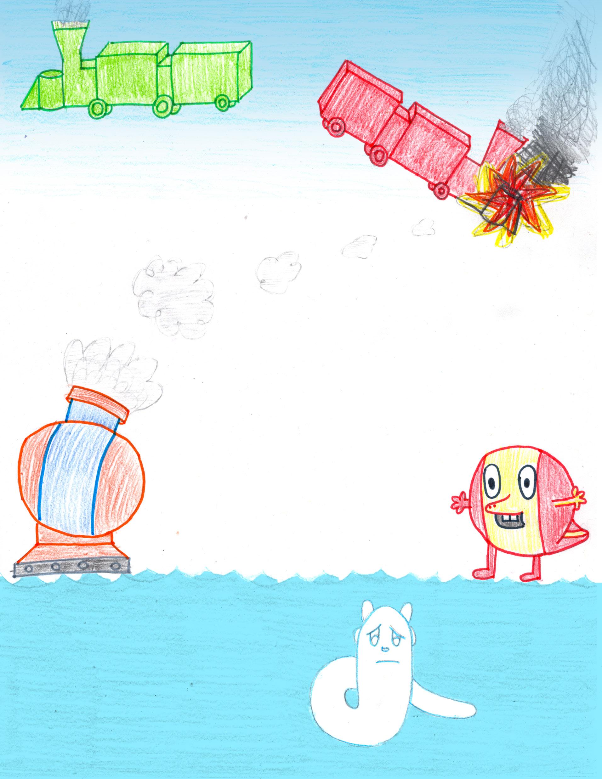 Small, balled creatures live cannon-loving lives on the blue ocean surface. The colorful trains that glide through the sky are some favorite targets of theirs. They build their cannons and fling themselves into the eternal memory of their kind.