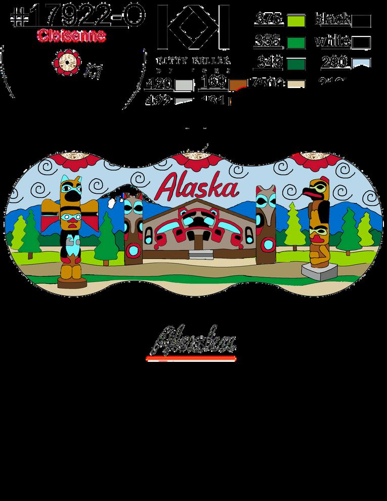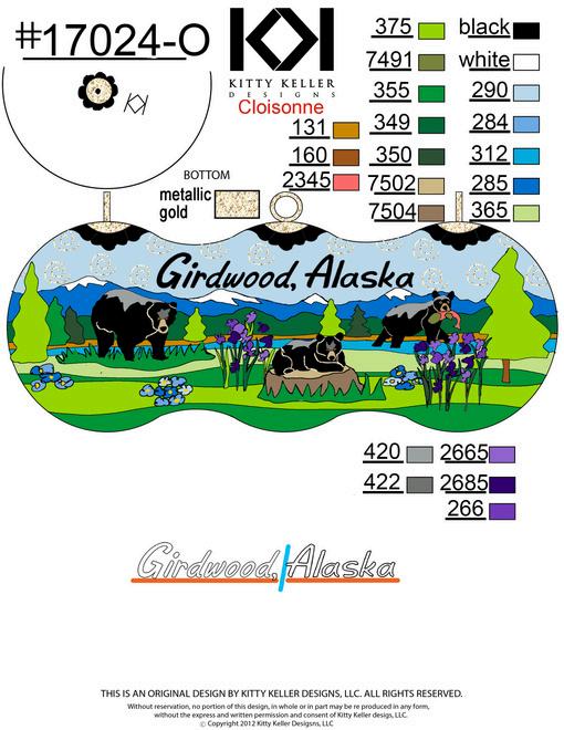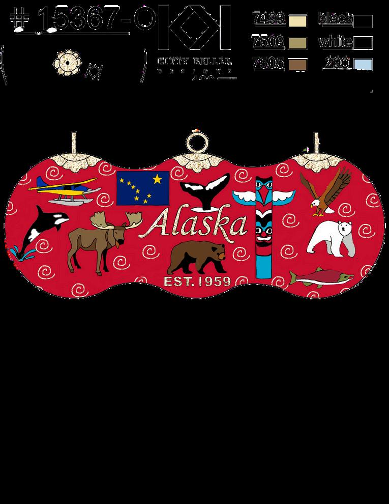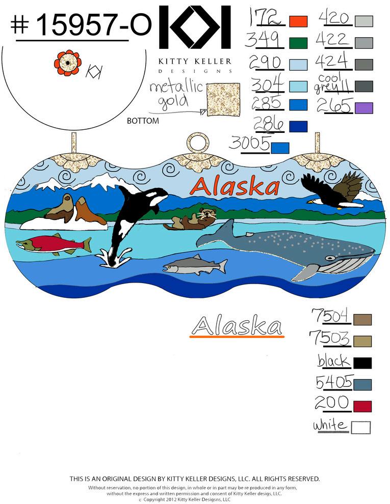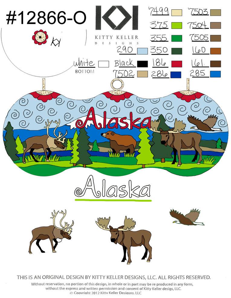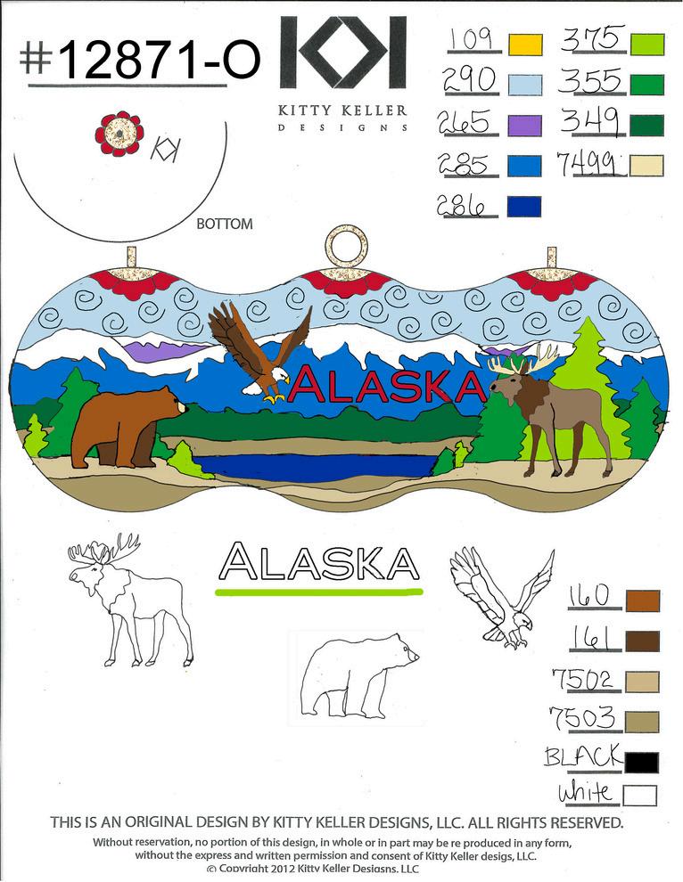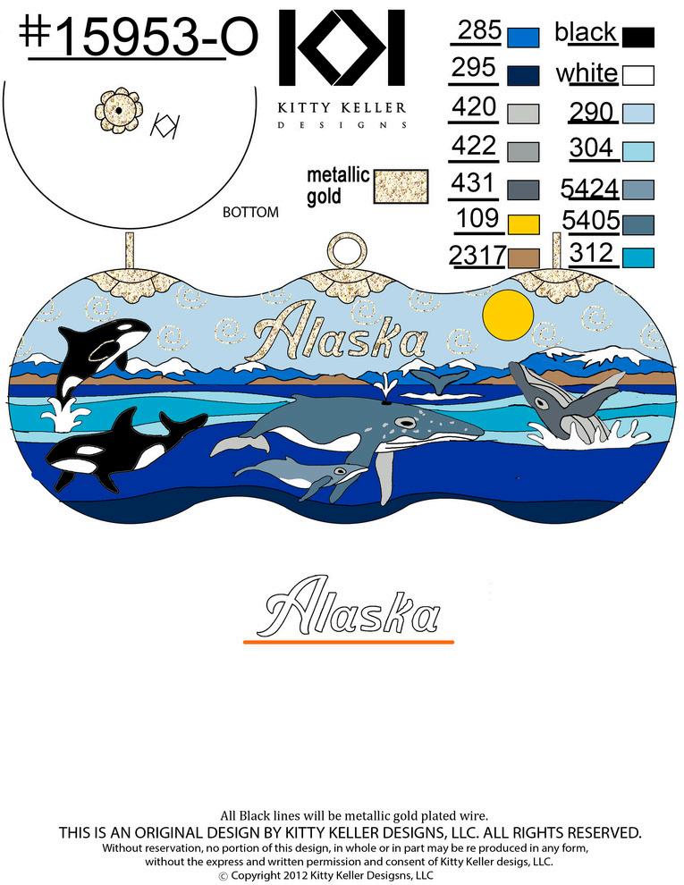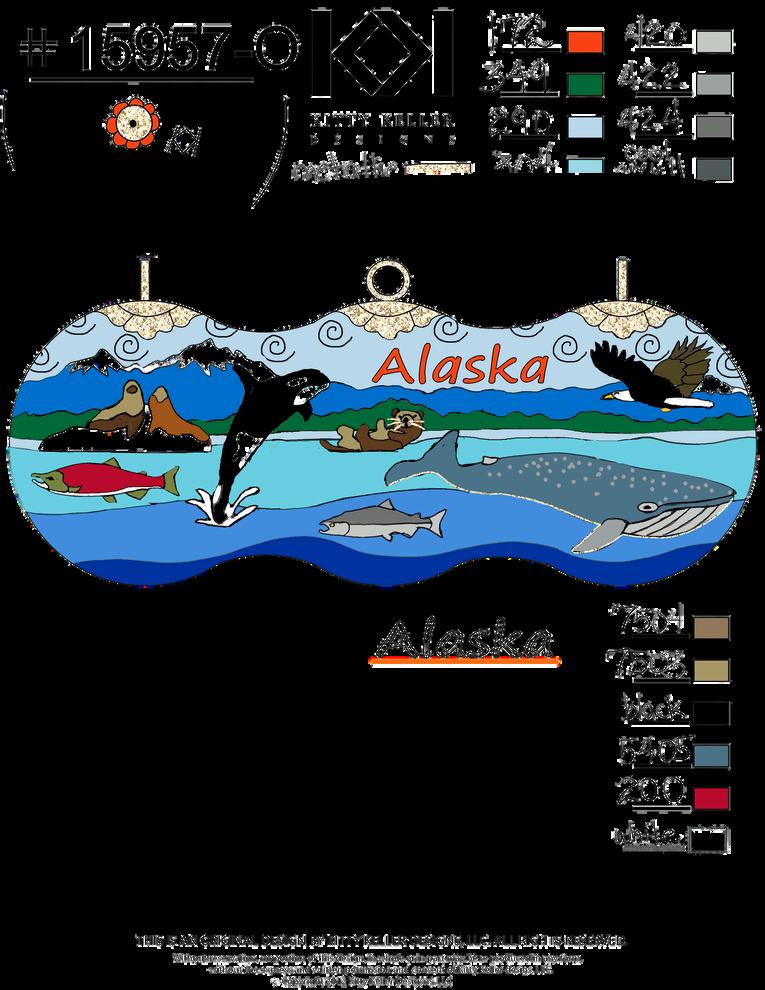#12866-O Caribou, Brown bear, Moose, Bald Eagle, Mtn Scene #12871-O Grizzly, Bald Eagle, Moose #13699-O State Shape, Dog Team, Moose, Eagle, Bear, Northern Lights #15960-O Grizzly with cub in Lupine #15952-O Sea Otters #15953-O Whales #15959-O Grizzly Bears Fishing #15957-O Water Scene