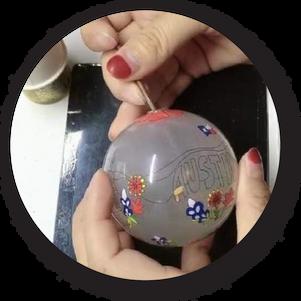 e ornaments are made from handblown glass, ating a clear glass ornament. The artisan nts a sketch of the design, using a fine-tip sh The complete design pattern is outlined de the ball. The artisan then fills in the sketch h colors as indicated on the design The last p is to fill in the solid background color.