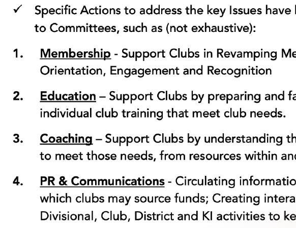 In all we do, we must ensure our members’ welfare is a part of our focus, as strong members make strong clubs, resulting in a stronger division. I encourage all clubs to develop your own strategic plans, which will help you to address issues affecting the status and health of your clubs, in your efforts to add new members.