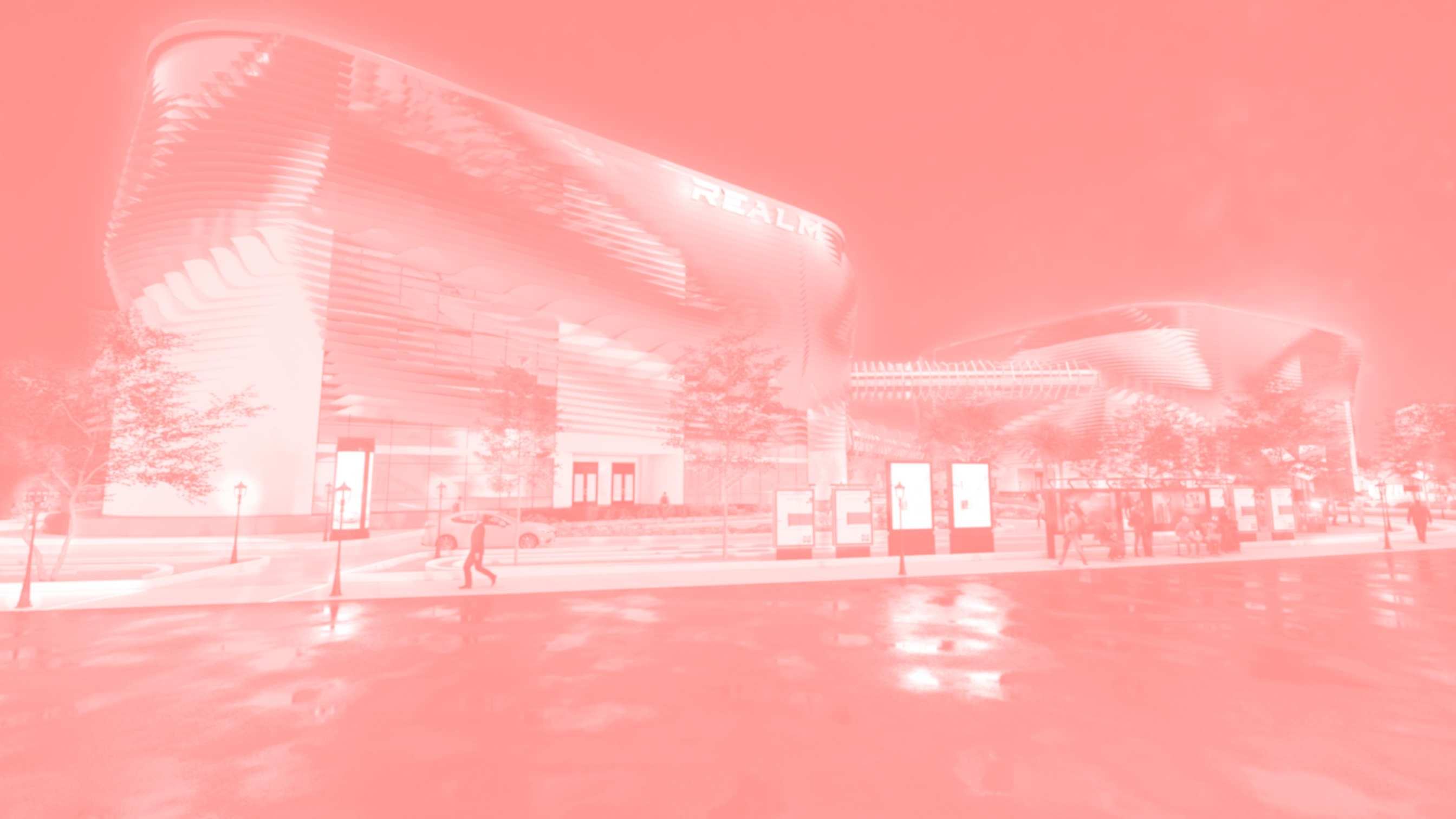 The architectural embodiment of the Pearl of the Orient Seas is characterized by its enveloping facade adorned with vivid coral-like patterns, complemented by gracefully undulating wave-shaped roofing.