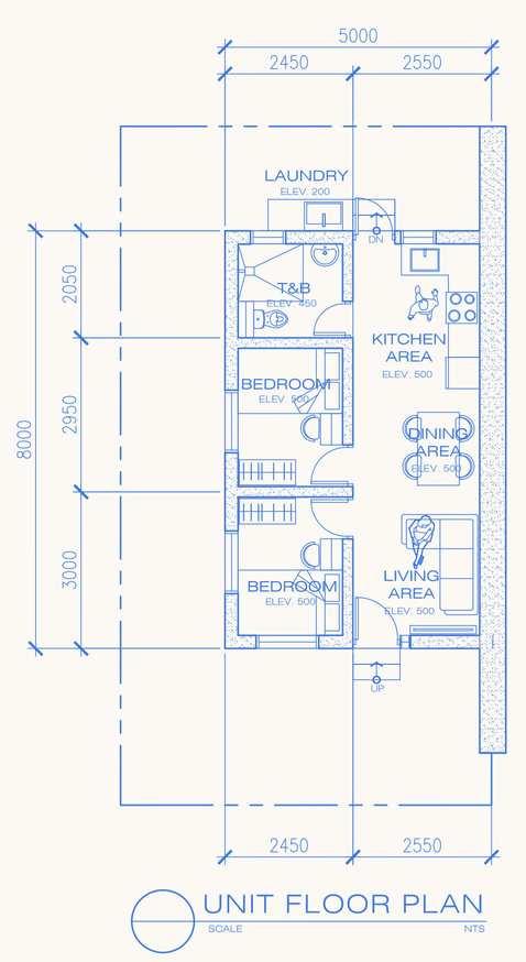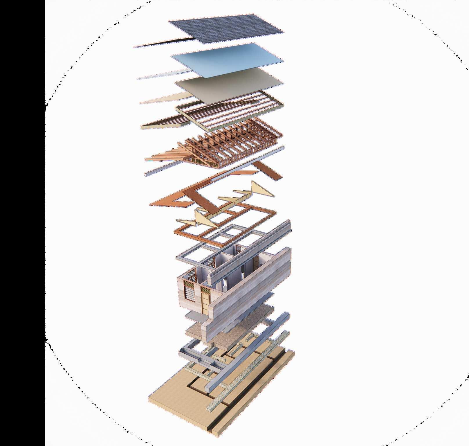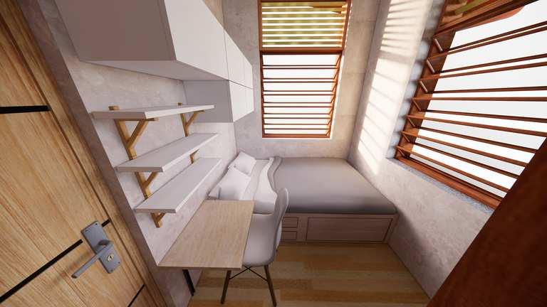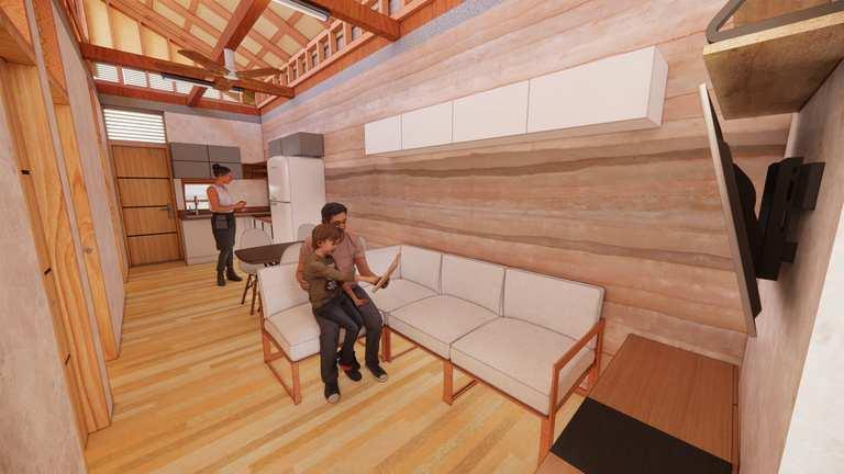 The paramount priority in this project revolves around the conceptualization and execution of a residence utilizing locally sourced and sustainable materials. Furthermore, meticulous attention has been devoted to the ergonomic and anthropometric planning of the dwelling's interior spaces. Additionally, the housing unit derives advantages from the natural ventilation facilitated by the utilization of jalousie-type windows. Shed-type roofing has been employed to optimize the ingress of natural sunlight into the residence.