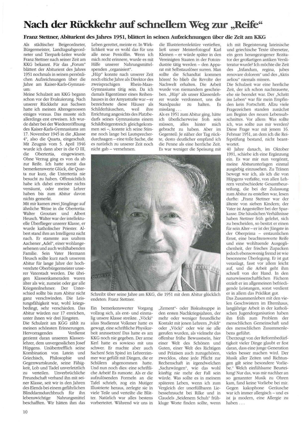 Franz Stettner über seine Zeit am KKG...............................................................................34