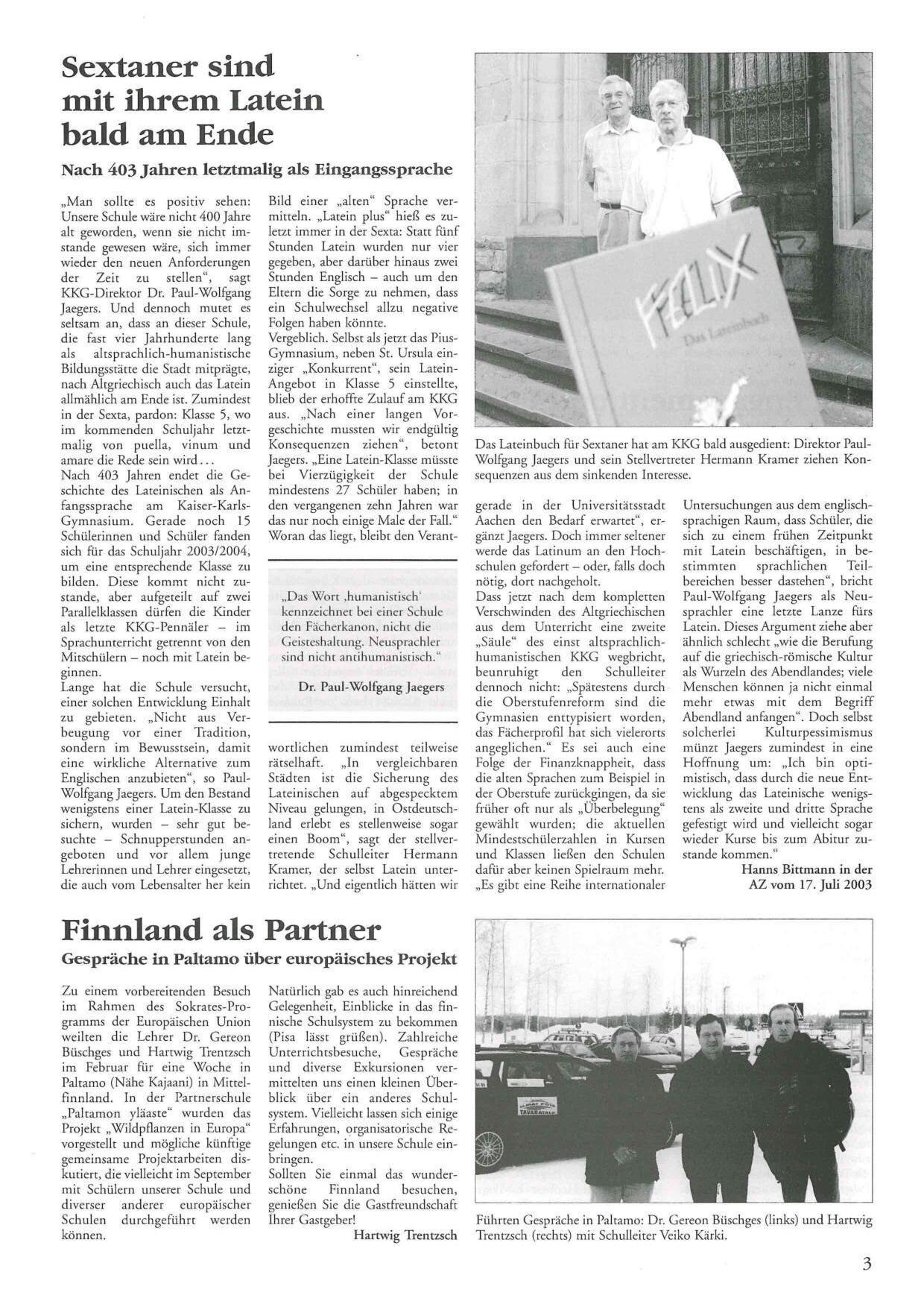 matisch-naturwissenschaftlichen Gymnasium mutieren, wenngleich wir natürlich da einen Schwerpunkt gelegt haben. Aber die Sprachen gehören einfach zur Tradition des Gymnasiums“, sagte Jaegers wenige Jahre vor seinem Ausscheiden als Schulleiter. Von dem großen Mehrwert des sprachlichen Lernens war er überzeugt.