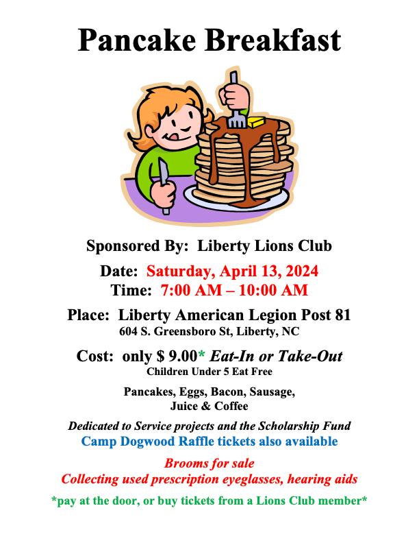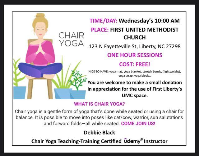 Where: First Baptist Church, 559 S. Fayetteville St. Liberty, NC