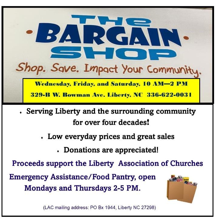 July 2023 The Liberty Leader Newspaper Volume 21 Issue 7 Ph Cell 336-404-9791 Page of 12 32 www.libertynewspaper.org Rent Our Space! C A L L U S T O L E A R N M O R E A B O U T H O W Y O U C A N R E N T T H E C O N T A C T A R T H U R M O O D Y @ 3 3 6 . 6 2 2 . 1 9 9 5 L I B E R T Y R U R I T A N B U I L D I N G F O R Y O U R N E X T E V E N T ! AVAILABLE FOR BIRTHDAY PARTIES, FAMILY REUNIONS, BRIDAL SHOWERS, CRAFT EVENTS, BABY SHOWERS, GENDER REVEALS, CELEBRATIONS, MEETINGS, HOLIDAY GATHERINGS, ETC. LOCATED AT 6901 HWY 49N LIBERTY, NC AT THE CITY LIIMT SIGN GOING TOWARD BURLINGTON Thank You... L I B E R T Y R U R I T A N A S S O C I A T I O N to all those who supported our Chicken & BBQ Fundraiser in April. Once again, we are blessed by our community. Congratulations to our raffle winners! Dorenda - Food Lion Gift Card Jimmy - Gas Gift Card Eric - Cash N e x t C h i c k e n & B B Q ~ S e p t e m b e r 3 0 , 2 0 2 3 M a r k Y o u r C a l e n d a r Piney Grove Methodist Church is seeking a parttime music director. Contact Cliff Stickney (919)818-7847 for more information.