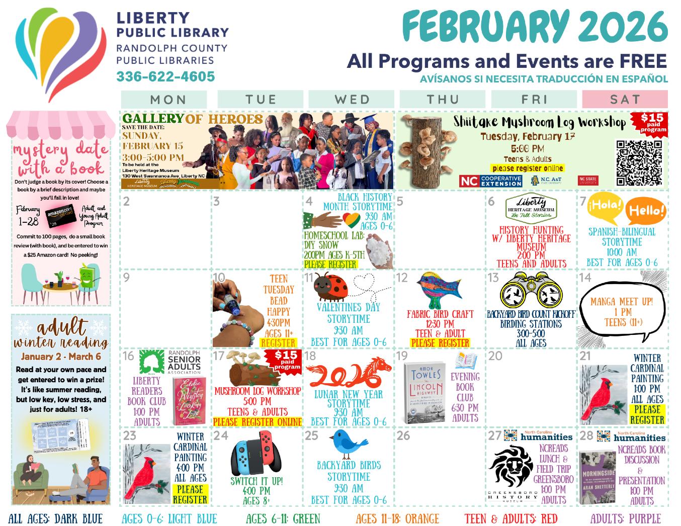 The Library held onsite 17 programs with 404 participants. We provided 2 story time programs to local preschools, and participated in the Fit for Liberty event at Liberty Elementary.