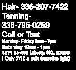 September 2023 The Liberty Leader Newspaper Volume 21 Issue 9 Ph Cell 336-404-9791 Page of 10 32 www.libertynewspaper.org T&T Wholesale 3252 Highway 49 North Liberty, NC. 27298 Located at the caution light in the tall gray building Hours: Sunday & Monday Closed Tuesday - Friday 10am-6pm Saturday 10am - 4pm 336-465-9259 Friendly Beauty Shop Ph 622-4989 514 N Greensboro St, Liberty Susie Ann Megan Mandy Mallory Kildee Church
