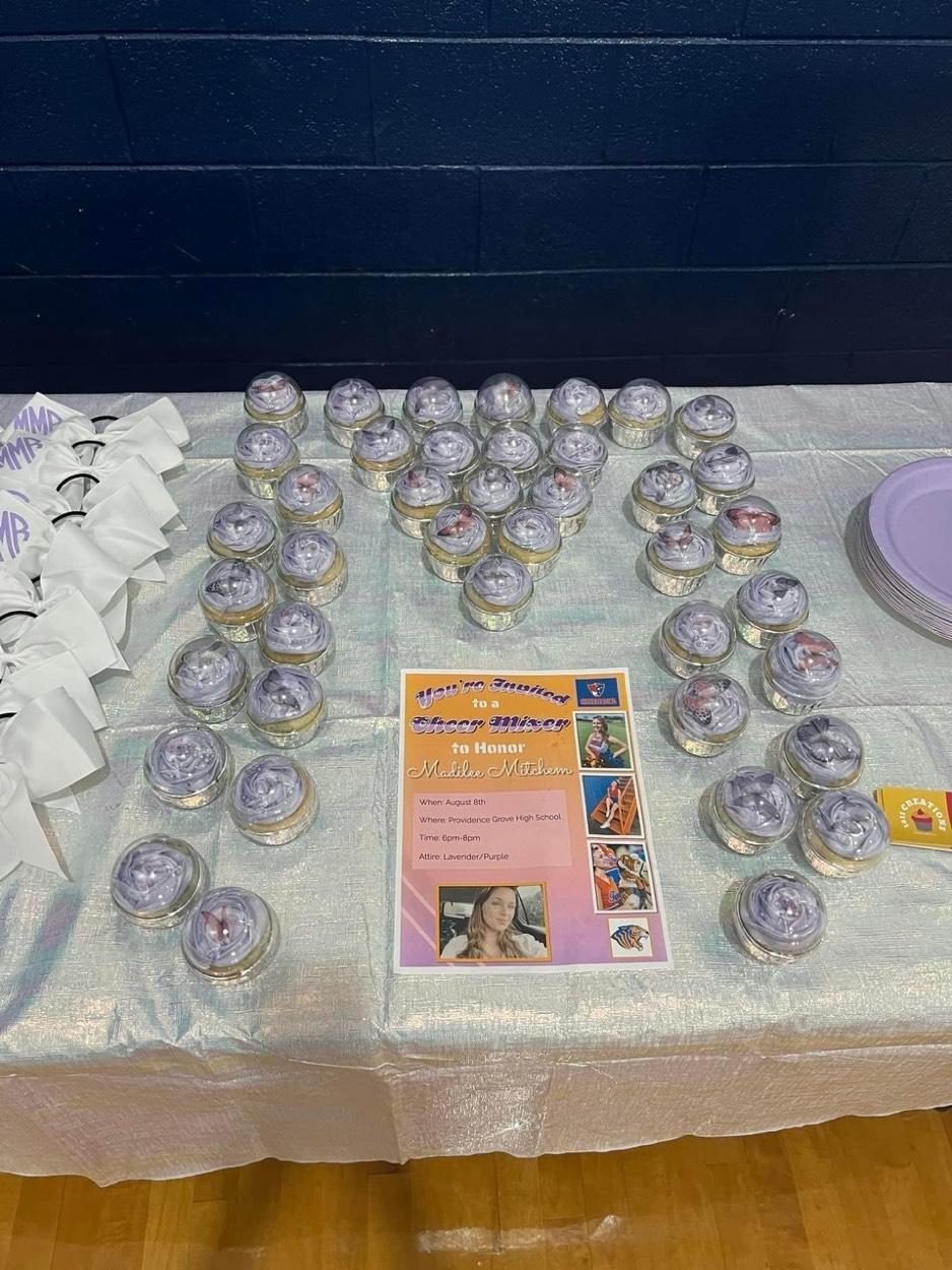 Kasey Williamson Gardner PGHS cheerleader coach shared , “Y’all!! My heart is full!! Tonight PG cheerleaders hosted a cheer mixer with Randleman cheerleaders in honor of Madilee Mitchem. Our teams ditched our school colors for lavender/purple and bonded as a community. Pastor Roger led us in icebreaker games, a very intense game of Simon says, and a wonderful message. We played, ate pizza and indulged incredible cupcakes and cookies donated from 1611 Creation, shared cheers from each team and did a lot of laughing. We also presented Randleman Cheerleaders with cheer bows with Madi’s monogram made by Katie Jaeger McGuf bigger than sports!!” Thank you for all that helped make this evening an incredible experience. As I left the school tonight, I knew Madilee and the Lord was pleased by the beautiful sunset they left us.