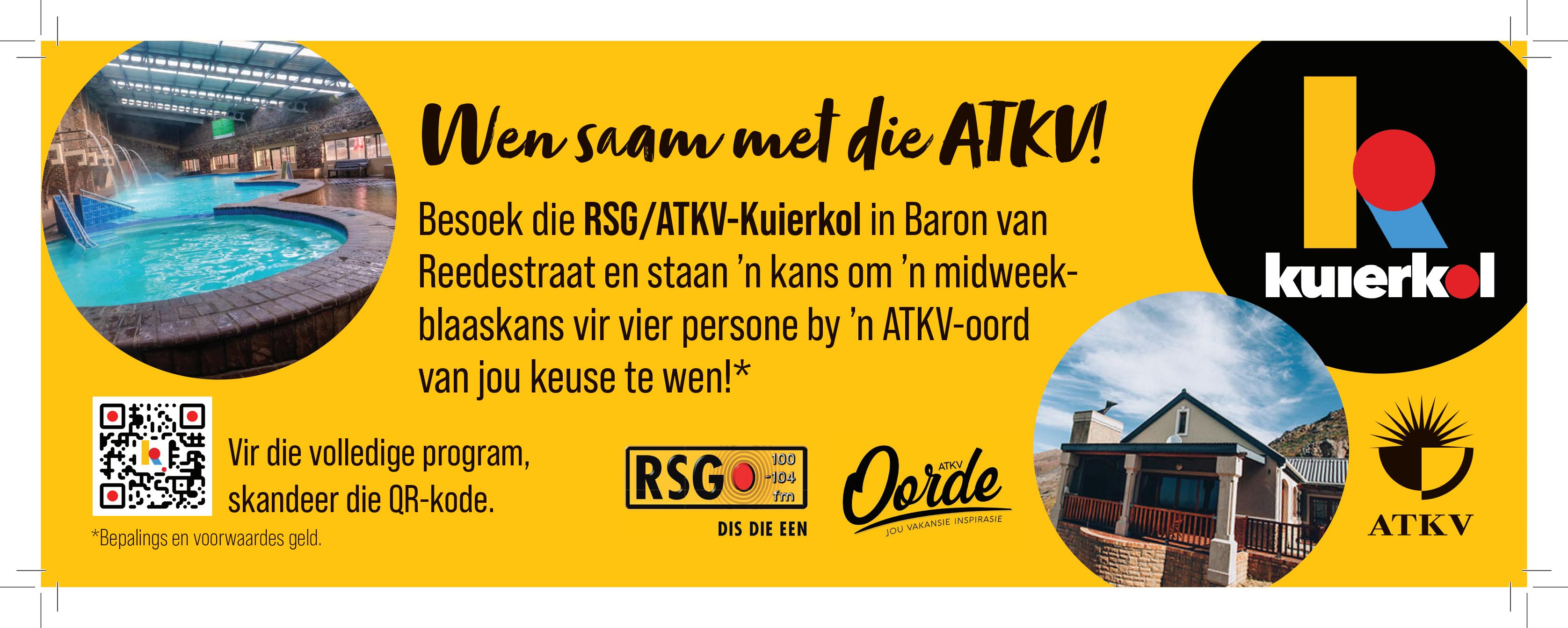 RSG en die ATKV se Kuierkol is terug by die KKNK en beslis dié plek om te wees vir die KKNK se 30ste verjaarsdag! Kom geniet ’n propvol program met regstreekse uitsendings, vermaak, speletjies vir oud en jonk, kinderpret en musiekoptredes. Ontmoet en gesels met RSG se gewilde omroepers en geniet die heerlike versnaperings wat rondom die Kuierkol beskikbaar is. Maak ’n draai, ons sien jou daar!