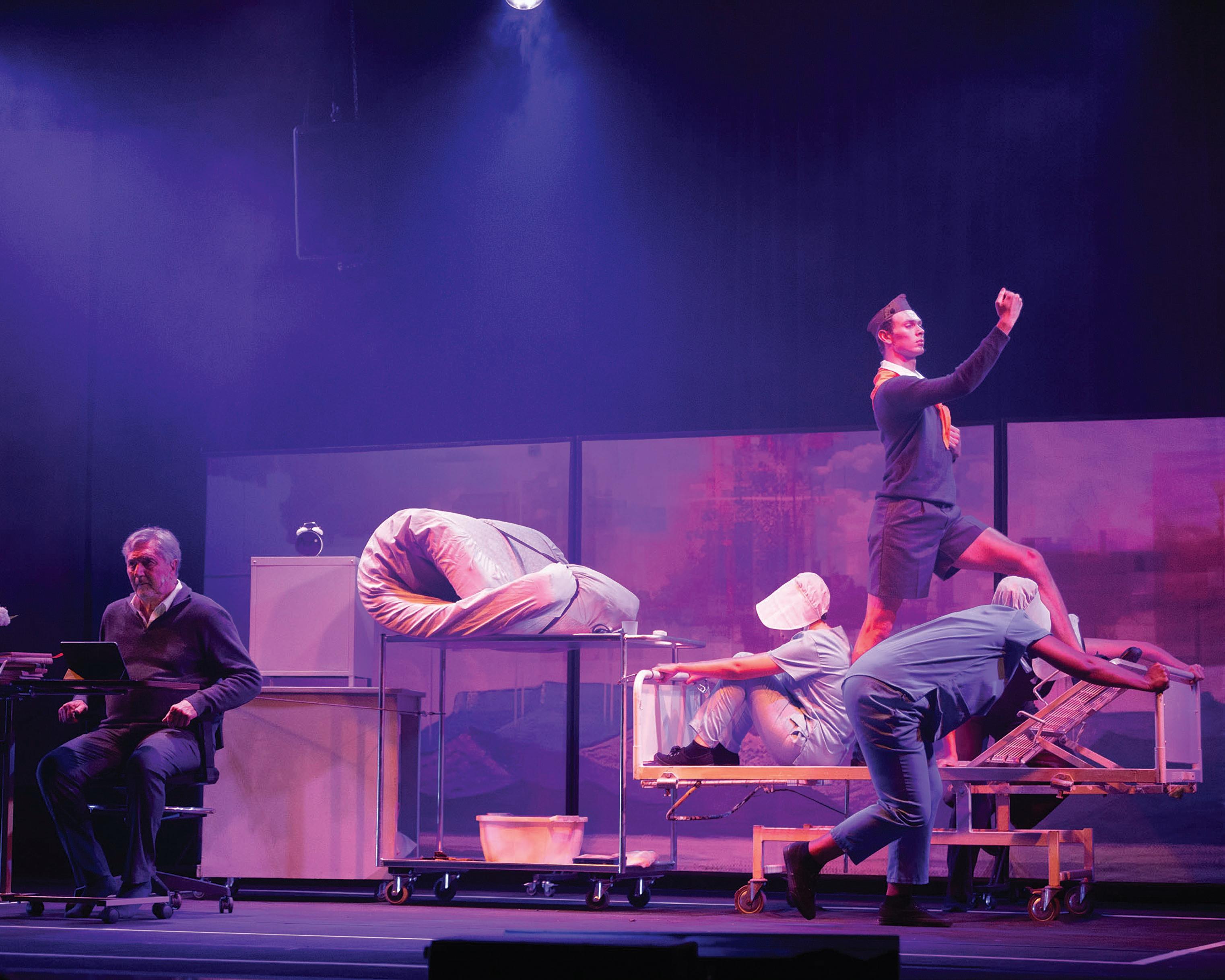 Nic de Jager, Daneel van der Walt, Jayden Dickson, Ntombi Makhutshi en Miché van Wyk deel die verhoog in Saartjie Botha se , onder regie van Wessel Pretorius. ’n Paar dae ná sy 90ste verjaarsdag word ’n emeritus professor oorweldig deur die lewe. Dit was ’n Saterdag, die Springbokke sou die middag speel, en sy rekenaar, foon, niks wou werk nie, alles het net te veel geraak. is ’n poging om sin te maak van sy konfrontasie met tegnologie. Foto: Hans van der Veen