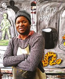 Kunsliefhebbers moet ’n draai gaan maak by die solo-uitstalling van Malebogo Molokoane, wenner van die Absa L’Atelier Gerard Sekoto-prys in 2022, wat dwarsdeur die fees in die Prince Vintcent-gebou te sien is.
