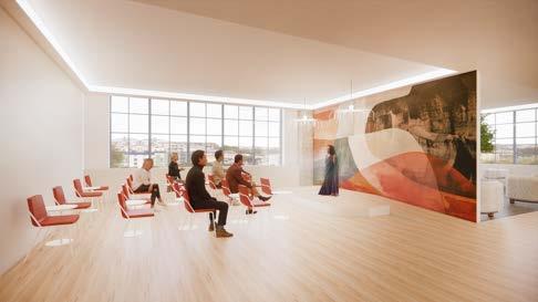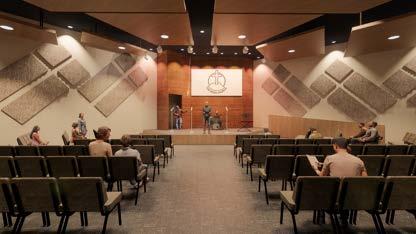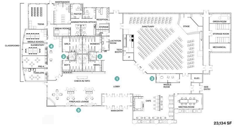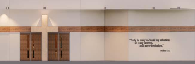 As guests enter the church, they will be greeted by an open concept featuring large windows that allow natural daylight to pour in, contributing to an inviting environment. Comfortable seating with modular furniture will enhance connections among congregation members and support moments of reflection.