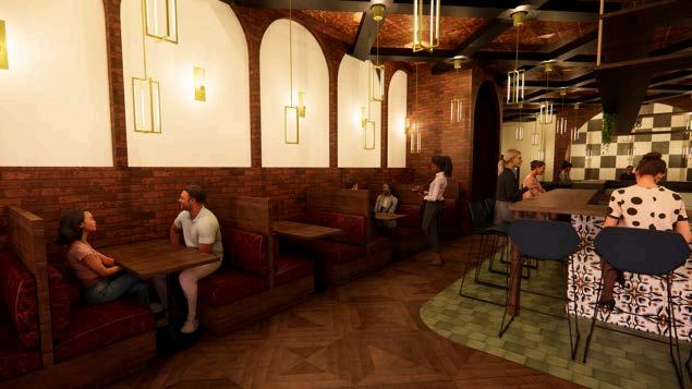 Seating beneath the striking arch wall offers an intimate atmosphere, while the booths provide a secluded space perfect for engaging in deep conversations and savoring delicious tapas.