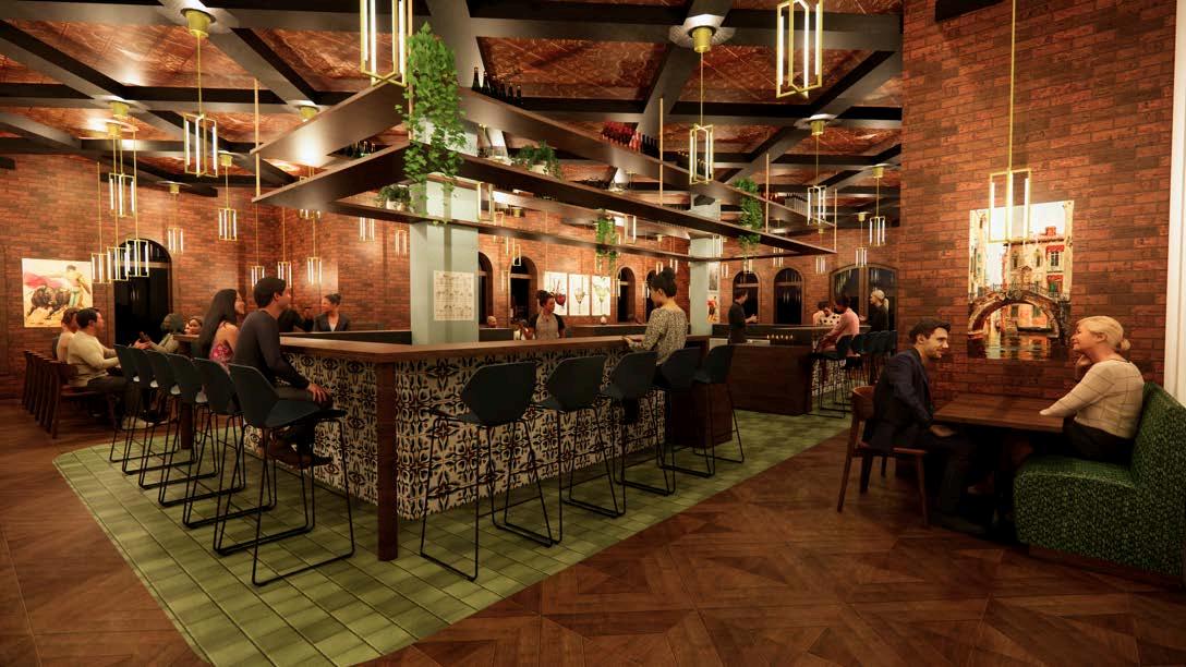The Hidden Cellar is a small-plate restaurant and cocktail bar that offers a unique and inviting lounge atmosphere. Inspired by Spanish culture, the restaurant features comfortable and welcoming elements, along with moody jewel tones, stonework, archways, and hand-painted tiles, all contributing to a family-friendly dining experience.
