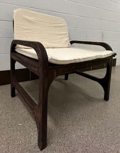 The objective of this project was to design a seating experience that stimulates the individual's five senses: touch, sight, taste, smell, and sound. The chair features a wide base that allows users to sit in various positions, including cross-legged for optimal comfort. It also features a gentle recline at a natural angle, offering both support and stability. Organic curves are integrated into the design to create visual appeal and foster a feeling of safety. Furthermore, the removable cushioning on the base and backrest guarantees that users feel both secure and at ease. The chair features a flip-up table for users to set their beverages or belongings.