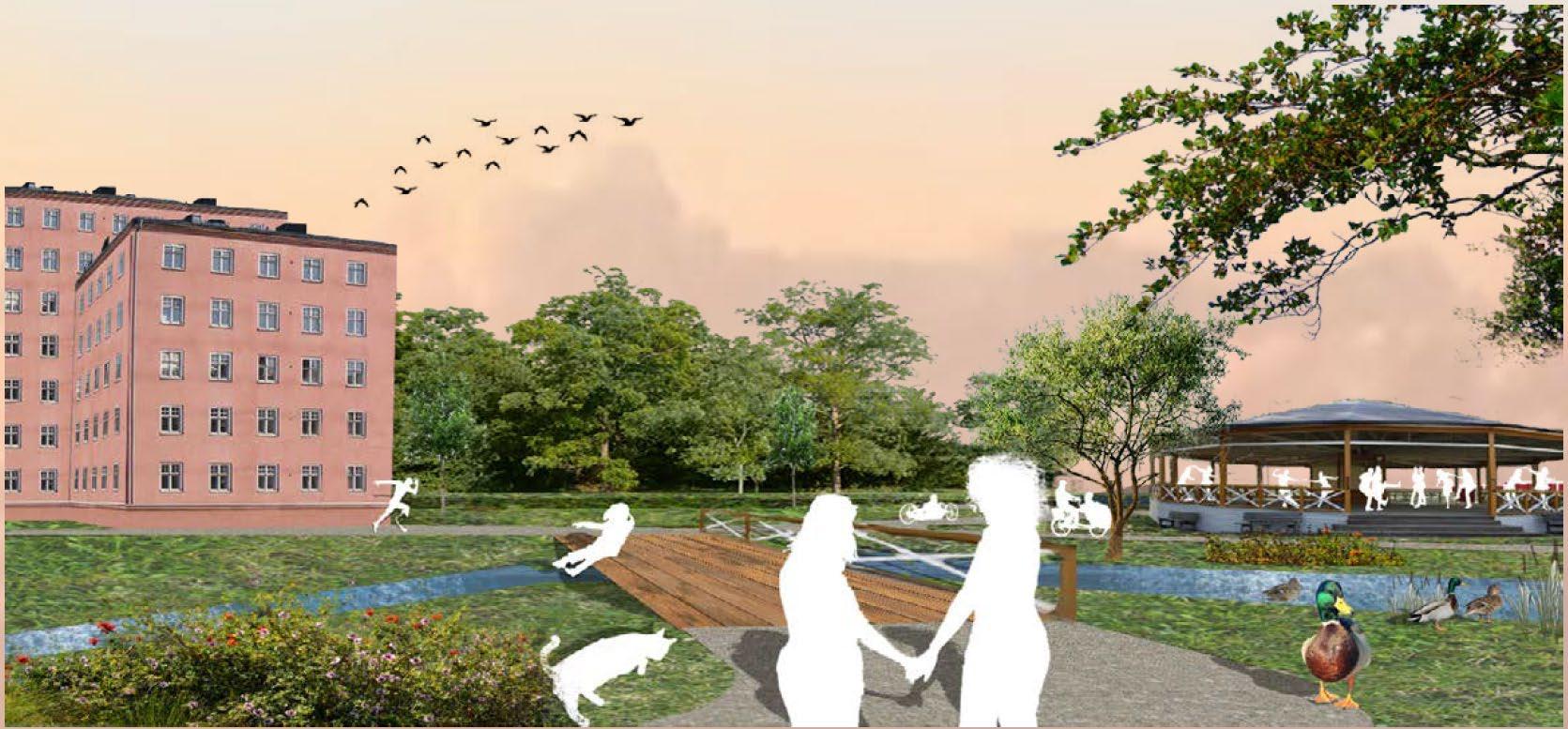 den har pekats ut som en framtida allaktivitetspark. Metoderna vi använde oss av var medborgarsamtal med intervjuer och enkät, Boverkets ekosystemtjänstverktyg ESTER, designprinciper för universell utformning och upplevelsevärden som främjar välmående.